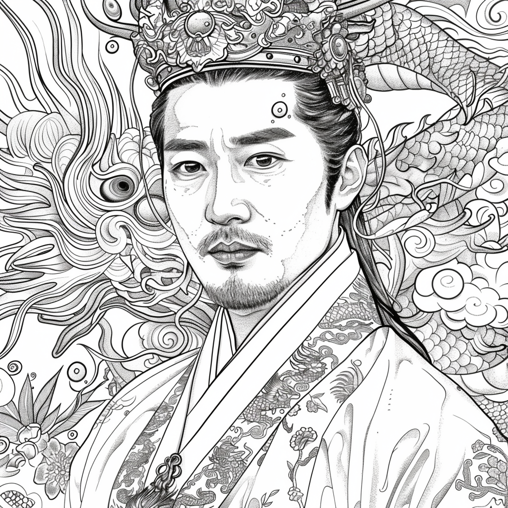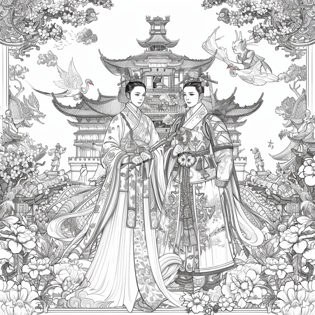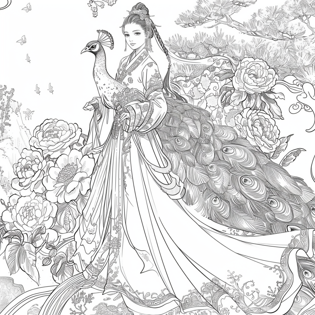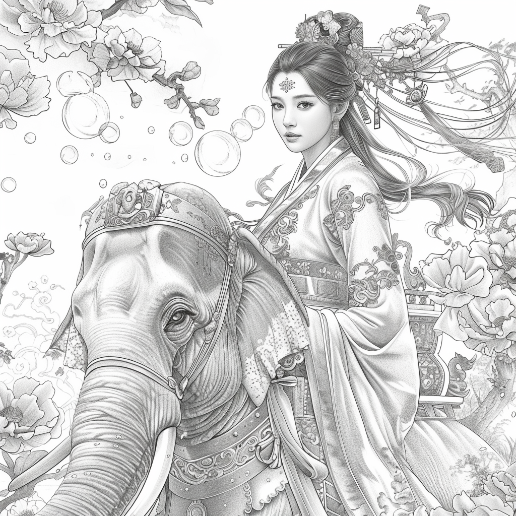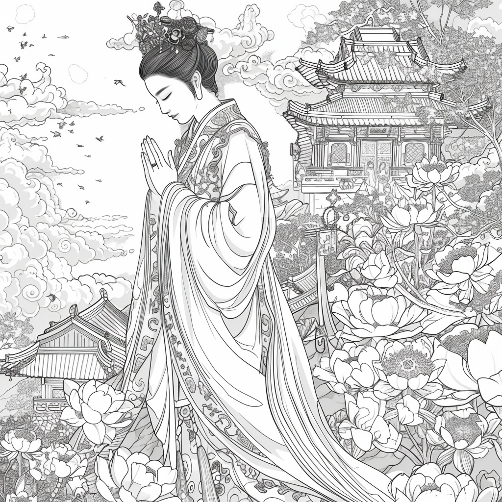 A noble princess stands in majestic poise, her hanbok flowing in deep crimson, ivory, and indigo hues, embroidered with golden patterns of flowers and phoenixes. The ornate black-and-gold belt across her waist accentuates her regal stature, while her jeweled crown glimmers under soft light. Around her, blossoms and painterly strokes swirl like a living canvas, blending the elegance of tradition with the vibrancy of artistry. This image captures the timeless beauty, strength, and dignity of a princess whose presence radiates both power and serenity.