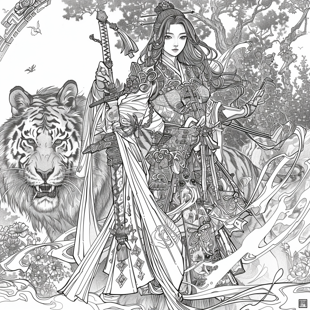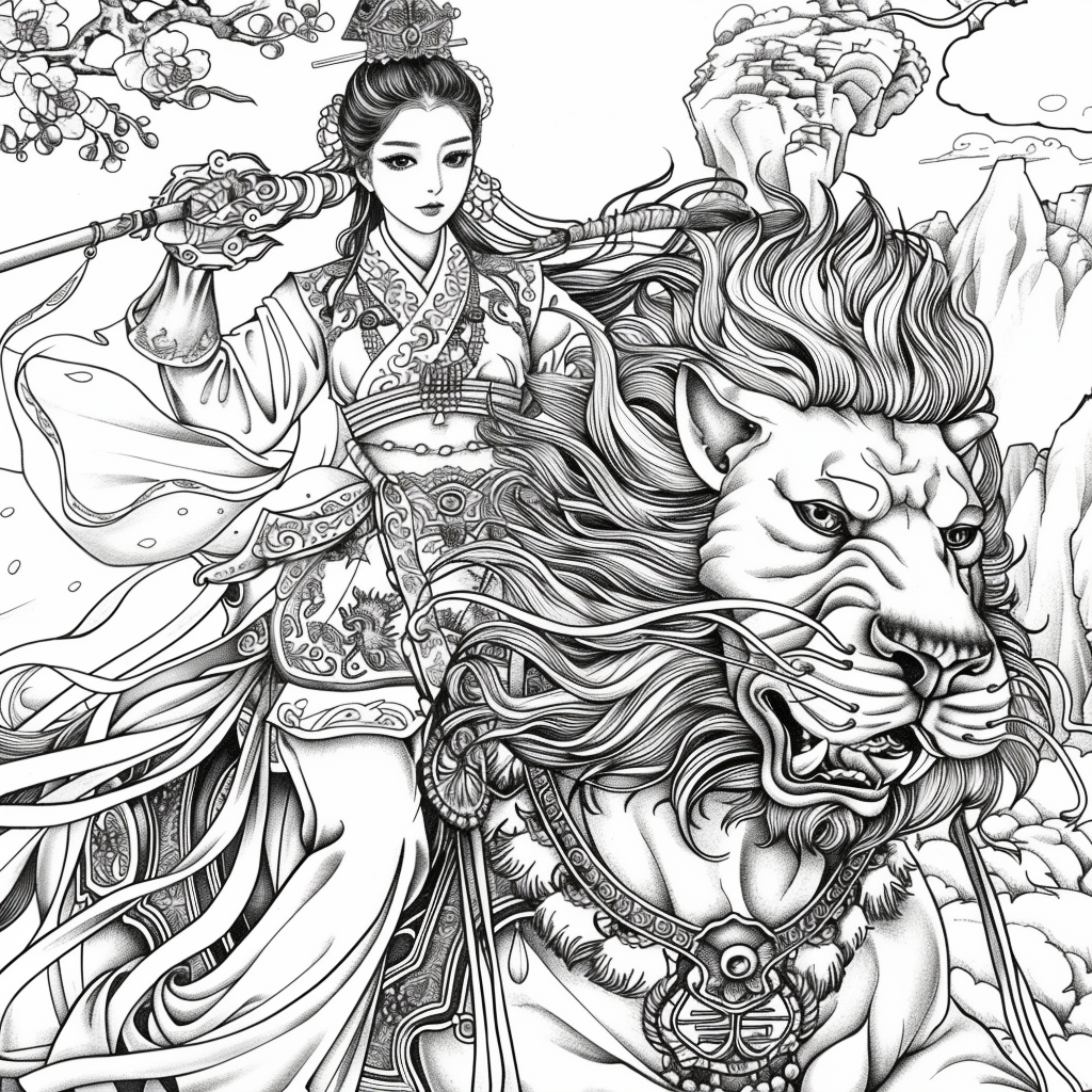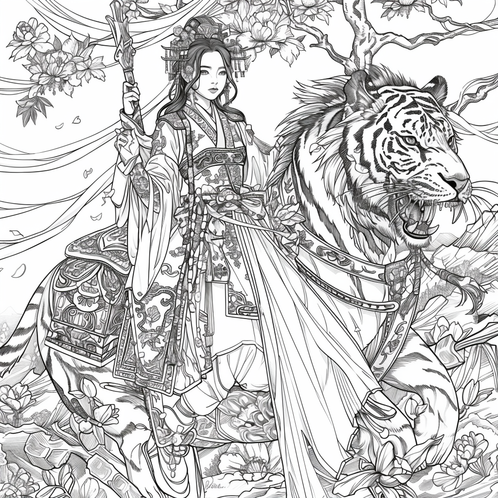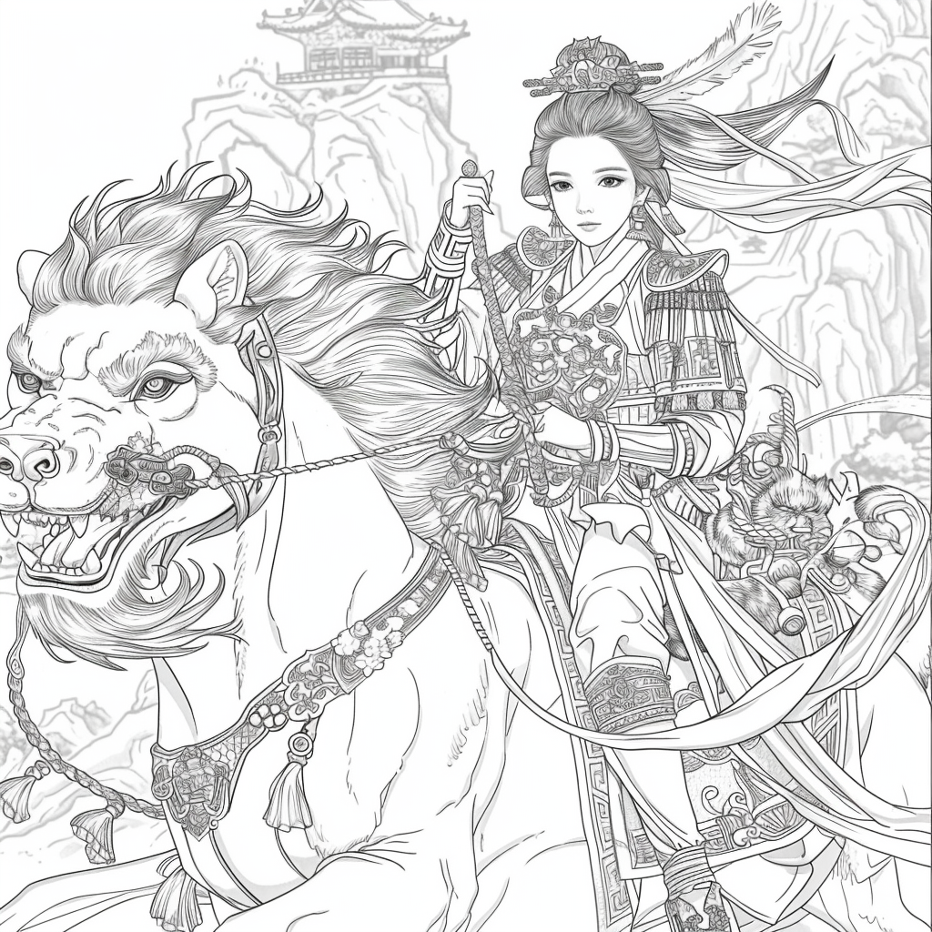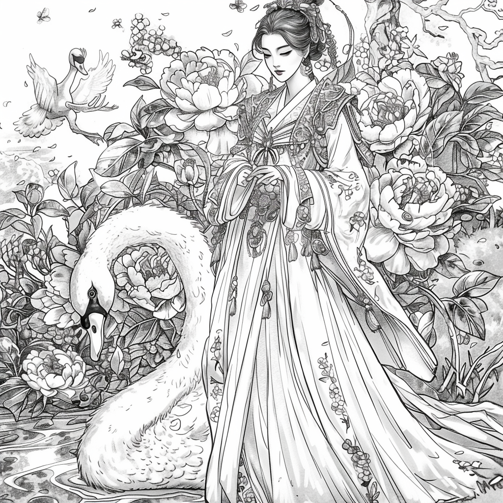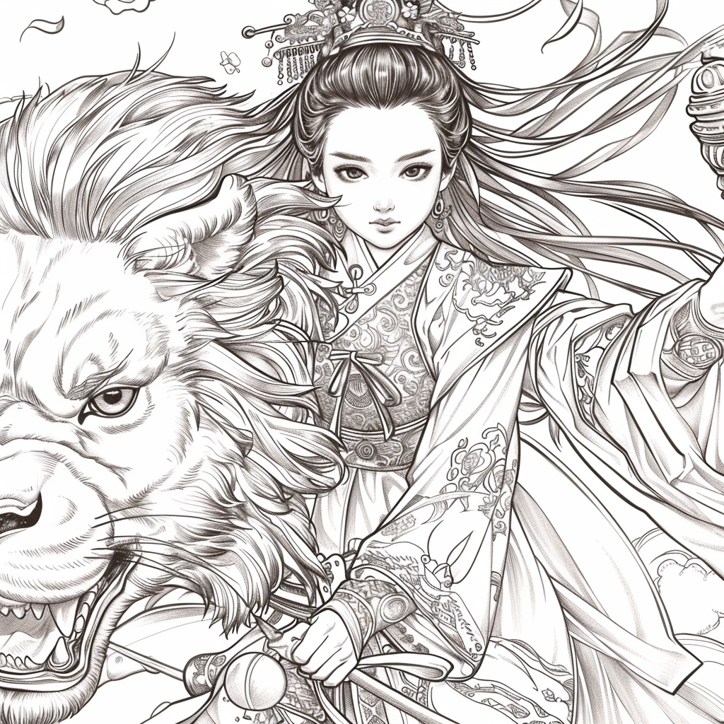 A radiant empress stands gracefully before a grand Joseon-era palace, her robe cascading in luminous waves of rainbow hues. The hanbok is richly adorned with intricate patterns of phoenixes, peonies, waves, and ancient symbols, blending natural forces with royal iconography. Behind her, the palace soars into dreamy clouds and blooming skies, evoking a timeless fantasy of cultural majesty. She embodies harmony, strength, and the spirit of Korea’s golden heritage, uniting architecture, tradition, and nature in one breathtaking tableau.