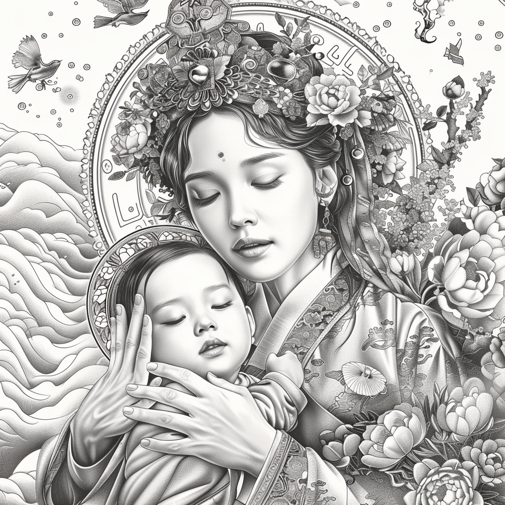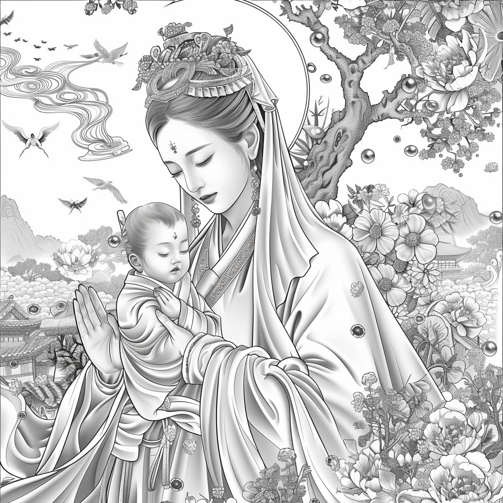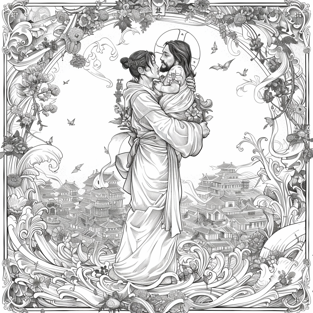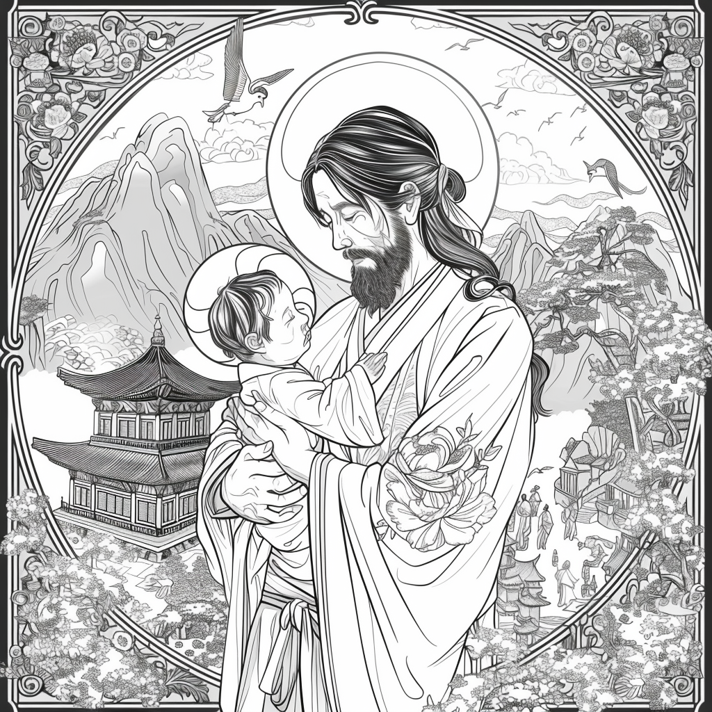 A breathtaking fusion of divine serenity and earthly beauty, this artwork captures the tender moment of Jesus cradling a newborn in His arms. Flowing locks dance in the wind, merging with a cascade of blossoms, lush gardens, and celestial bubbles, symbolizing life’s purity and abundance. Soft petals, drifting clouds, and gentle ripples weave together heaven and earth, while the warm glow on His face radiates unshakable compassion and grace. In this sacred embrace, the innocence of a child meets the infinite love of the Shepherd, embodying peace, hope, and the eternal gift of life.