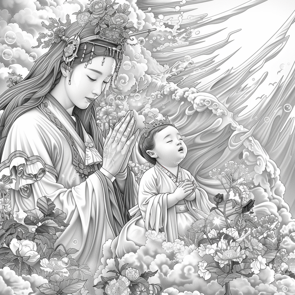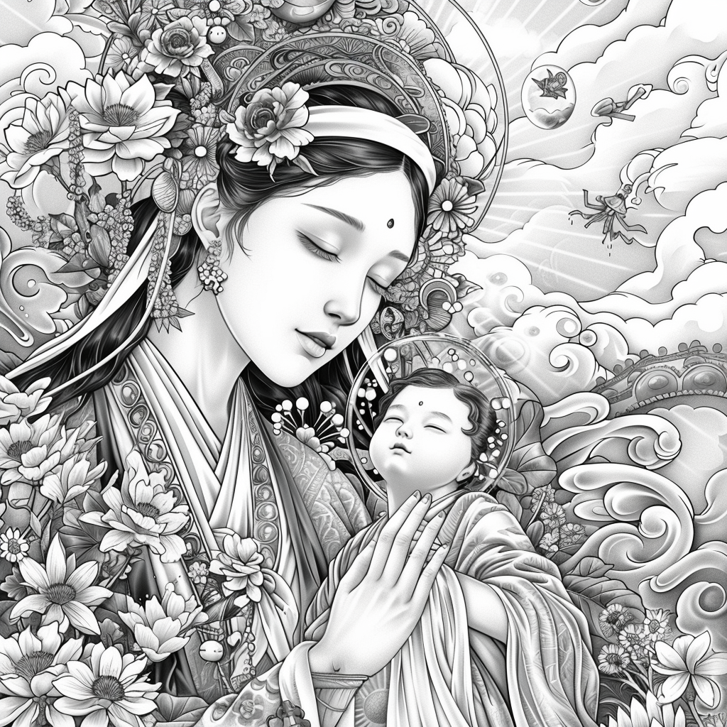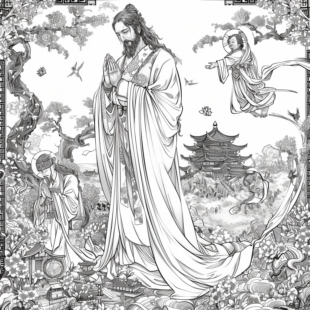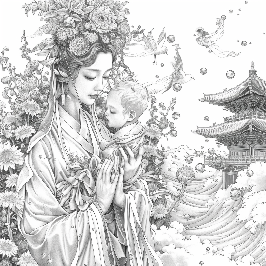 A breathtaking fusion of divine serenity and earthly beauty, this artwork captures the tender moment of Jesus cradling a newborn in His arms. Flowing locks dance in the wind, merging with a cascade of blossoms, lush gardens, and celestial bubbles, symbolizing life’s purity and abundance. Soft petals, drifting clouds, and gentle ripples weave together heaven and earth, while the warm glow on His face radiates unshakable compassion and grace. In this sacred embrace, the innocence of a child meets the infinite love of the Shepherd, embodying peace, hope, and the eternal gift of life.