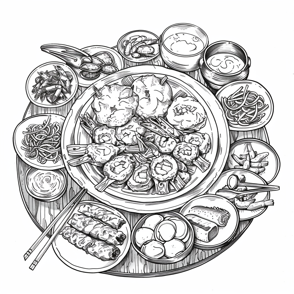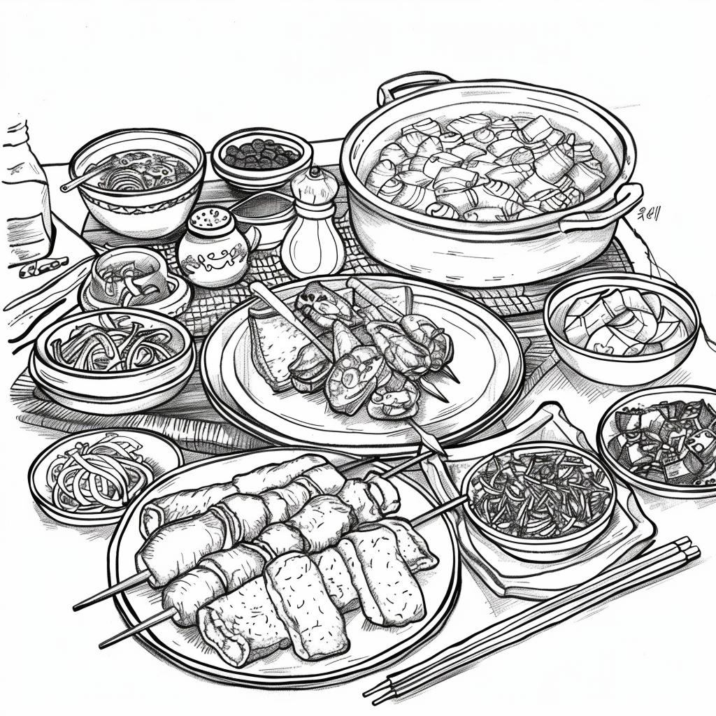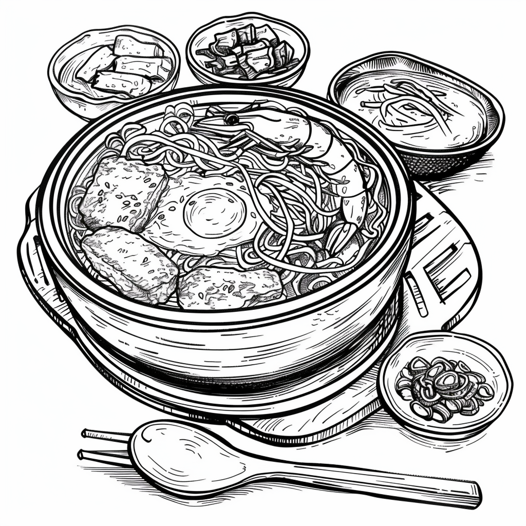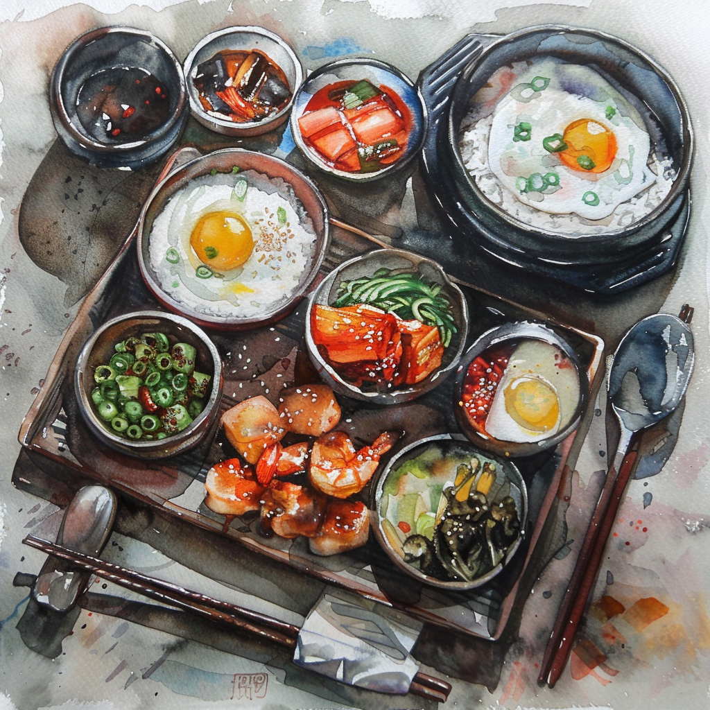 Flavors of Korea is a mouthwatering watercolor artwork capturing the soul of Korean cuisine in stunning artistic detail. From the perfectly fried sunny-side egg over steamed rice to the colorful spread of kimchi, seasoned vegetables, shrimp, pickled sides, and soup, each dish is delicately painted with rich tones and texture that evoke warmth and home-cooked comfort.