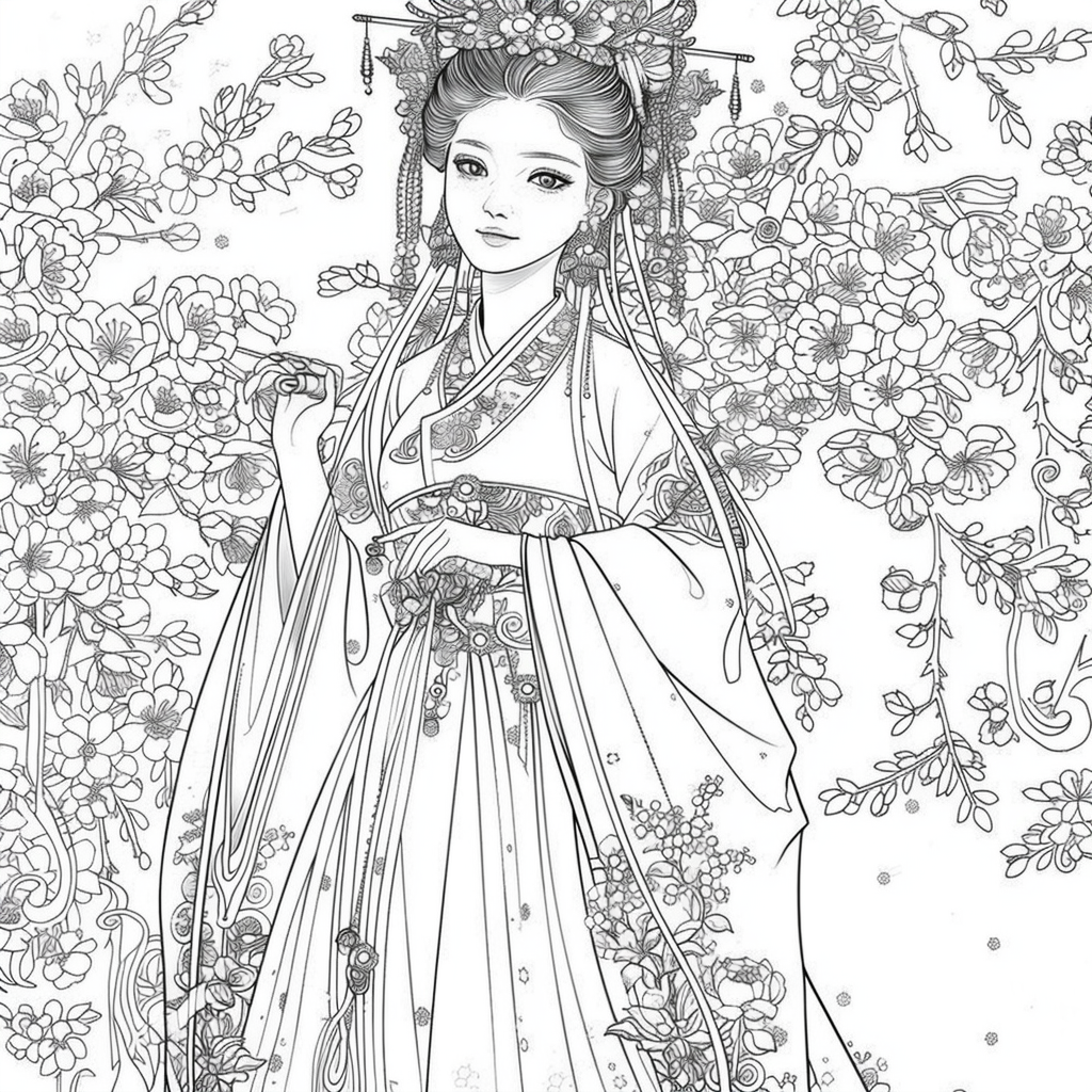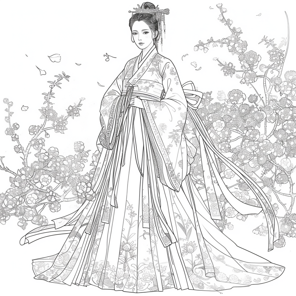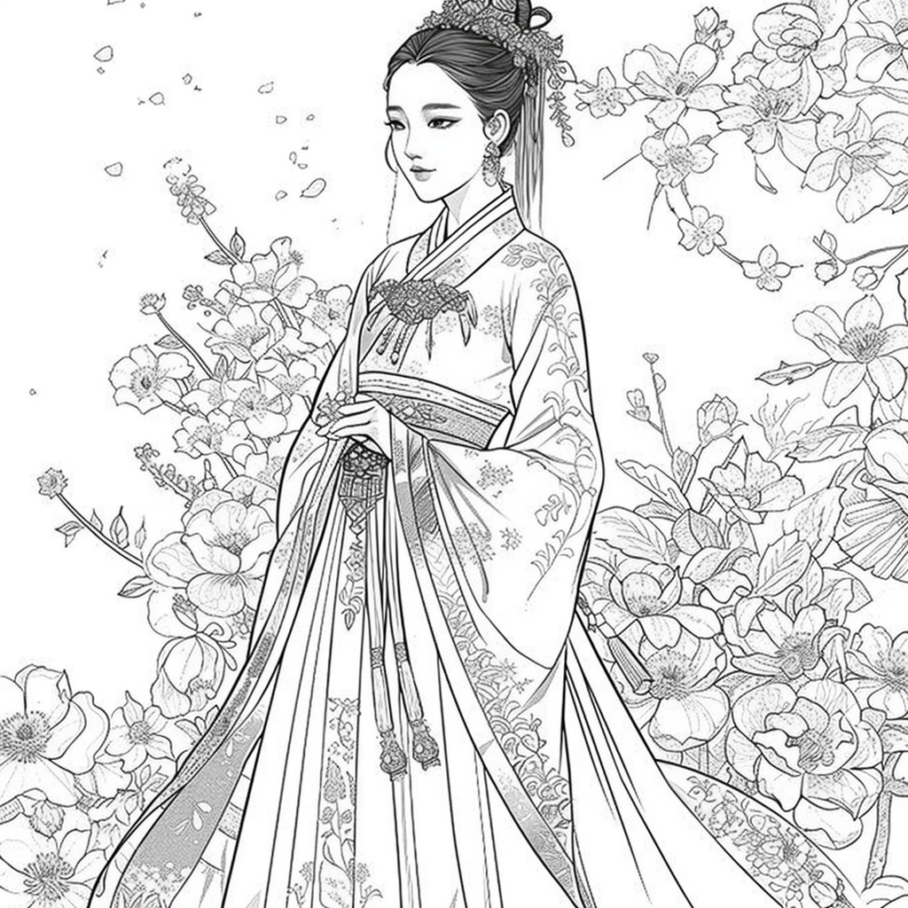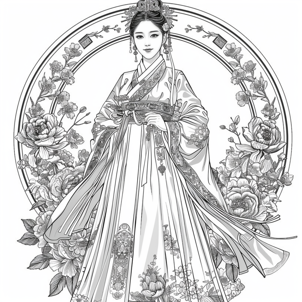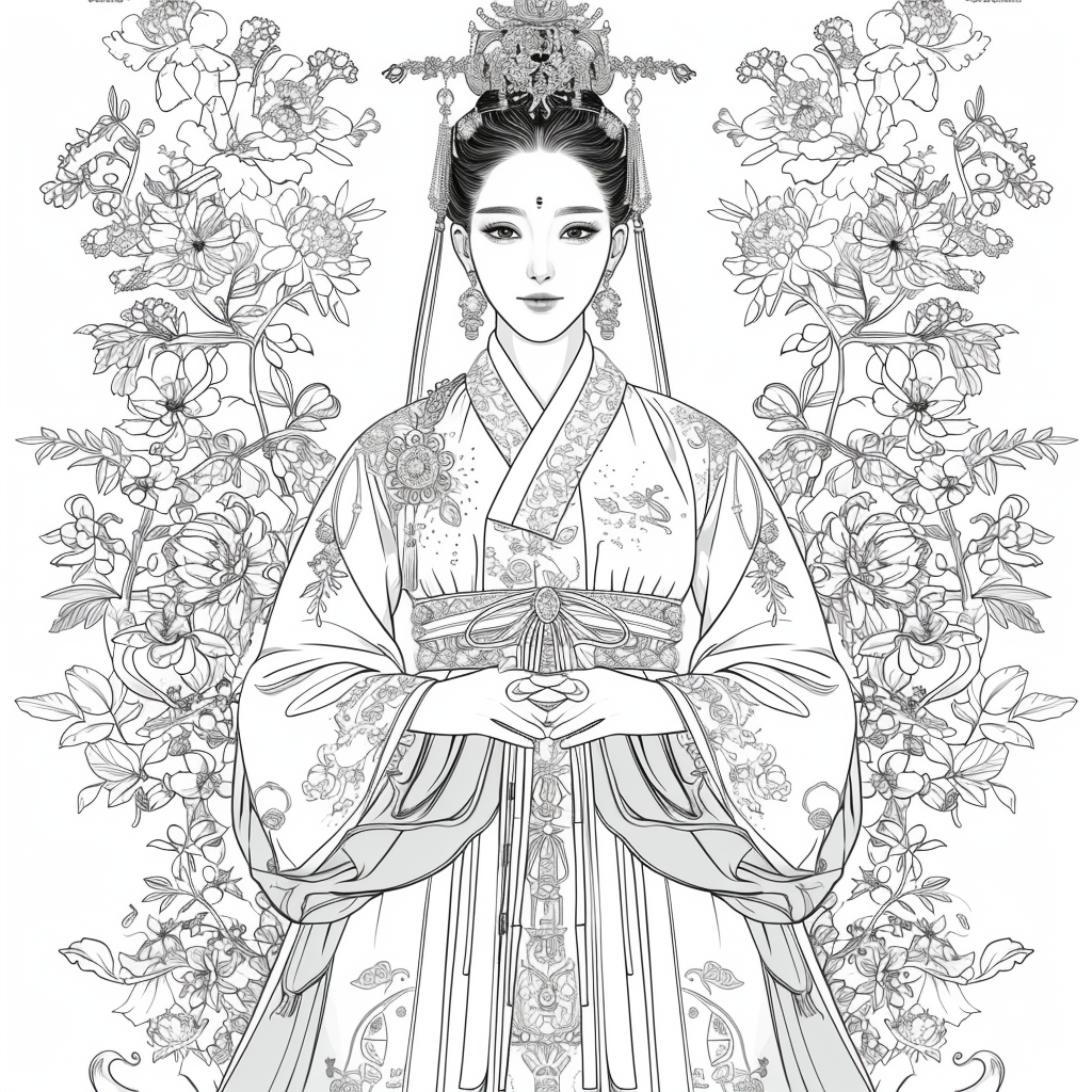Bathed in a vivid cascade of watercolor splashes and blooming petals, this portrait captures the graceful beauty of a young Korean woman in traditional hanbok. Her poise and calm expression are accentuated by the dynamic interplay of colors — vibrant reds, lush greens, and electric blues — dancing across the fabric and background. Surrounding her are bold blossoms, delicately merging realism with abstraction, symbolizing youthful elegance, cultural pride, and the artistic bloom of life. A breathtaking blend of tradition and modern painterly expression.