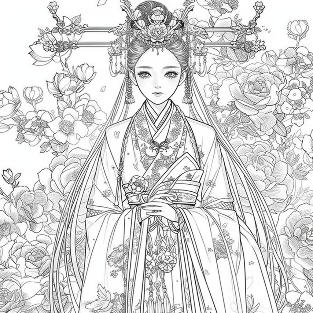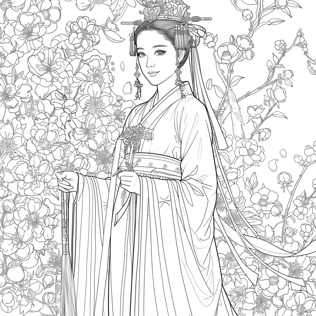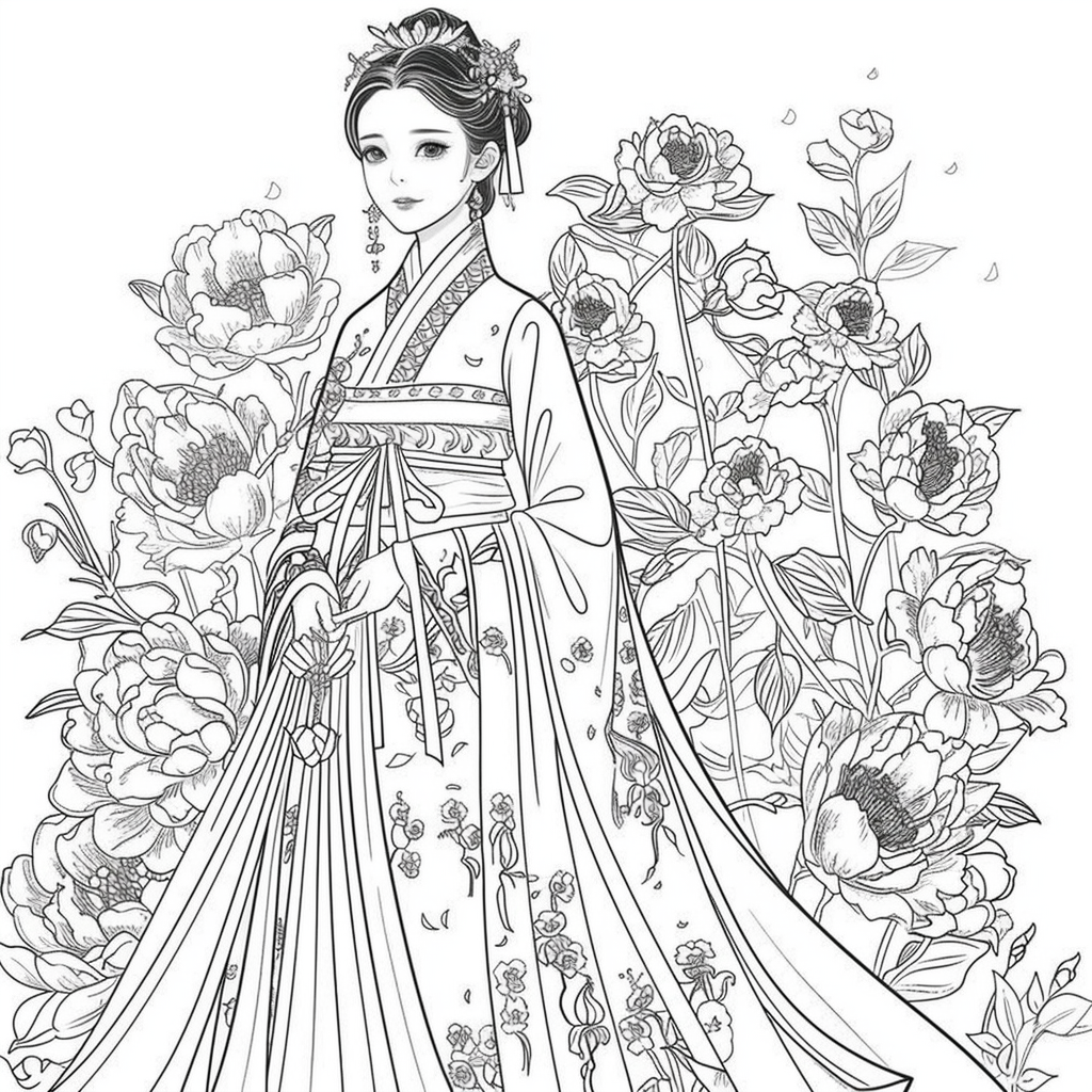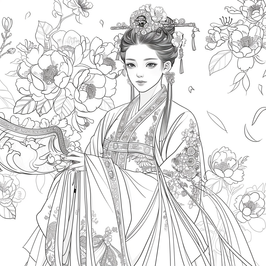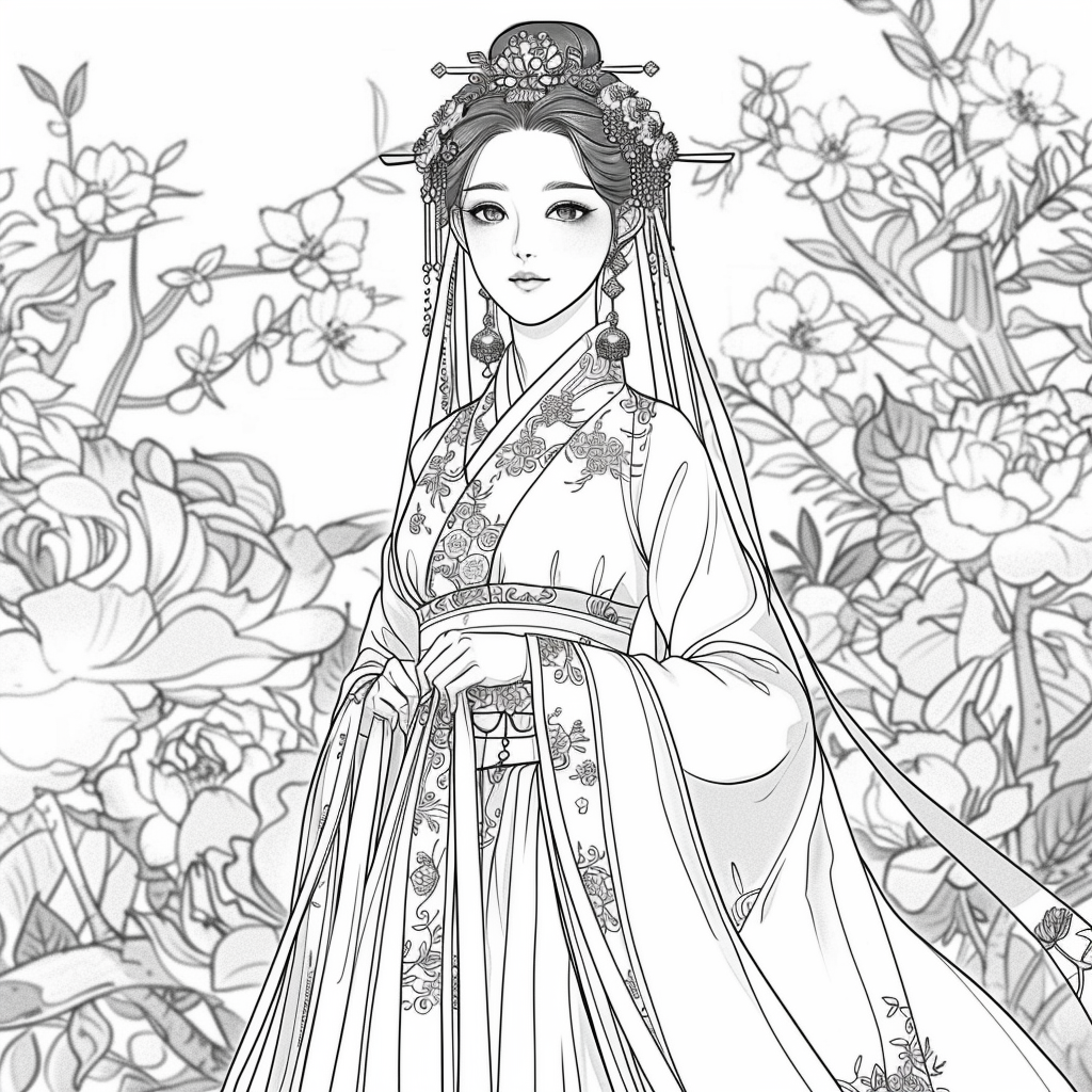 Bathed in a vivid cascade of watercolor splashes and blooming petals, this portrait captures the graceful beauty of a young Korean woman in traditional hanbok. Her poise and calm expression are accentuated by the dynamic interplay of colors — vibrant reds, lush greens, and electric blues — dancing across the fabric and background. Surrounding her are bold blossoms, delicately merging realism with abstraction, symbolizing youthful elegance, cultural pride, and the artistic bloom of life. A breathtaking blend of tradition and modern painterly expression.