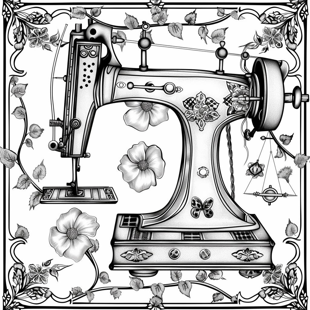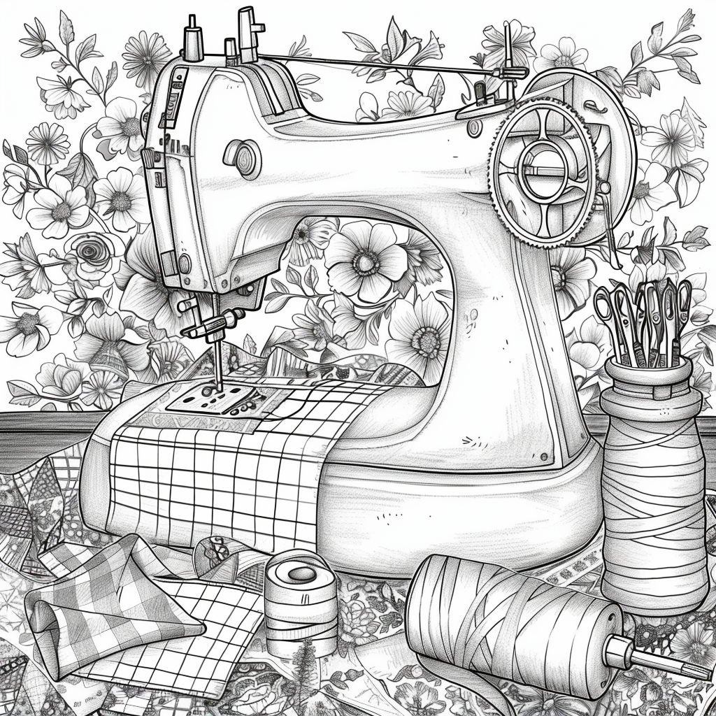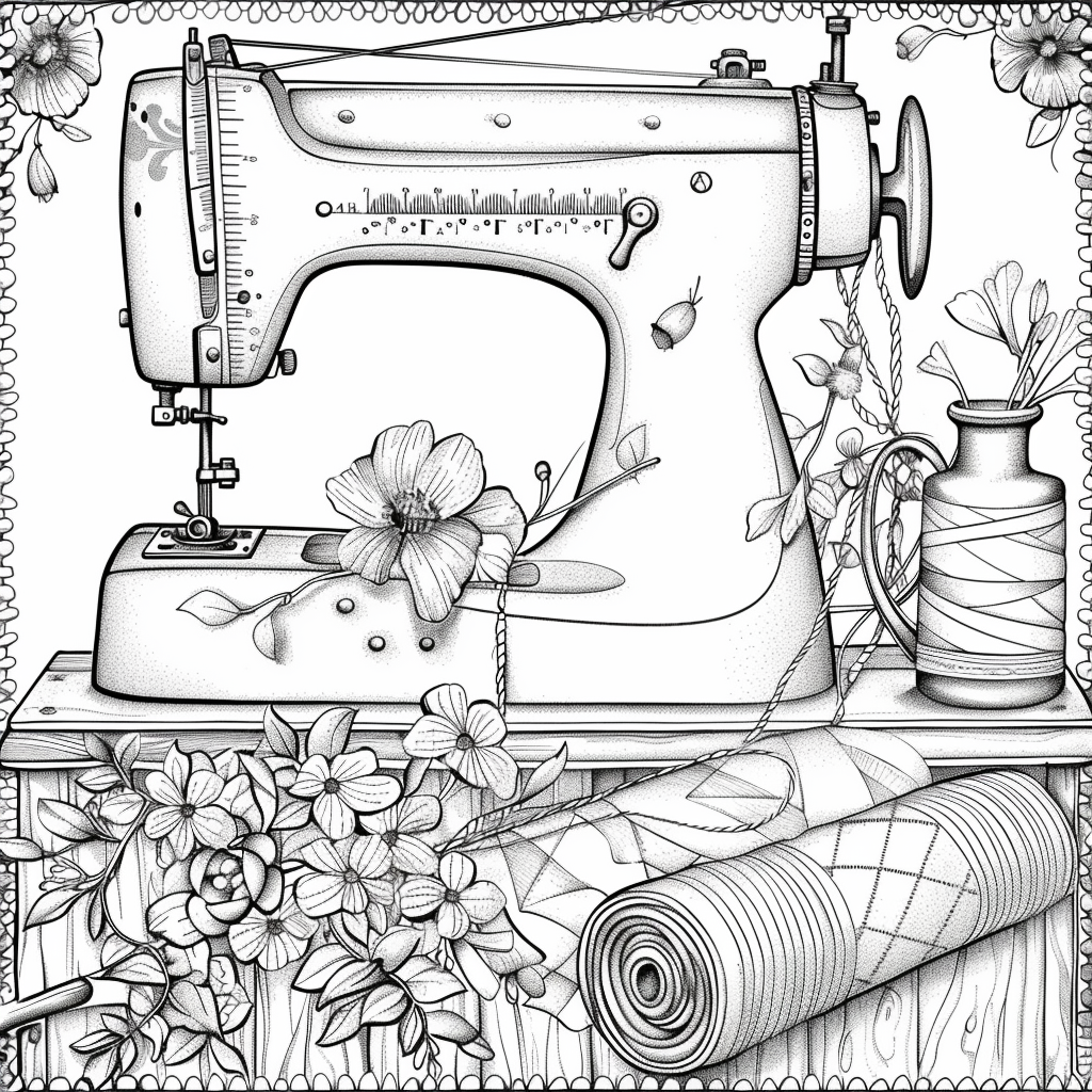 A celebration of creativity and craftsmanship, this whimsical watercolor artwork transforms a classic vintage sewing machine into a blooming canvas of floral beauty. Covered in lush hand-painted blossoms and vibrant botanical patterns, the machine pulses with life—symbolizing the joyful fusion of nature and handmade artistry. Bursts of pinks, oranges, purples, and greens surround the frame, capturing the heart of a maker’s world where every stitch tells a story.