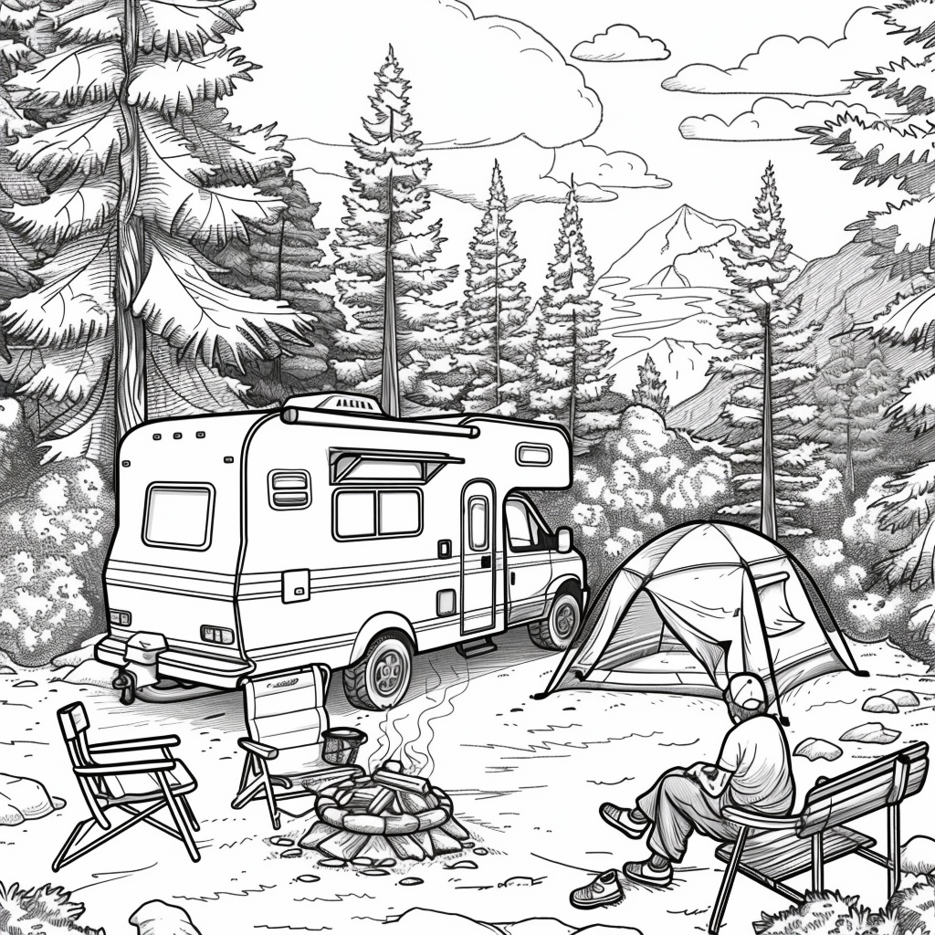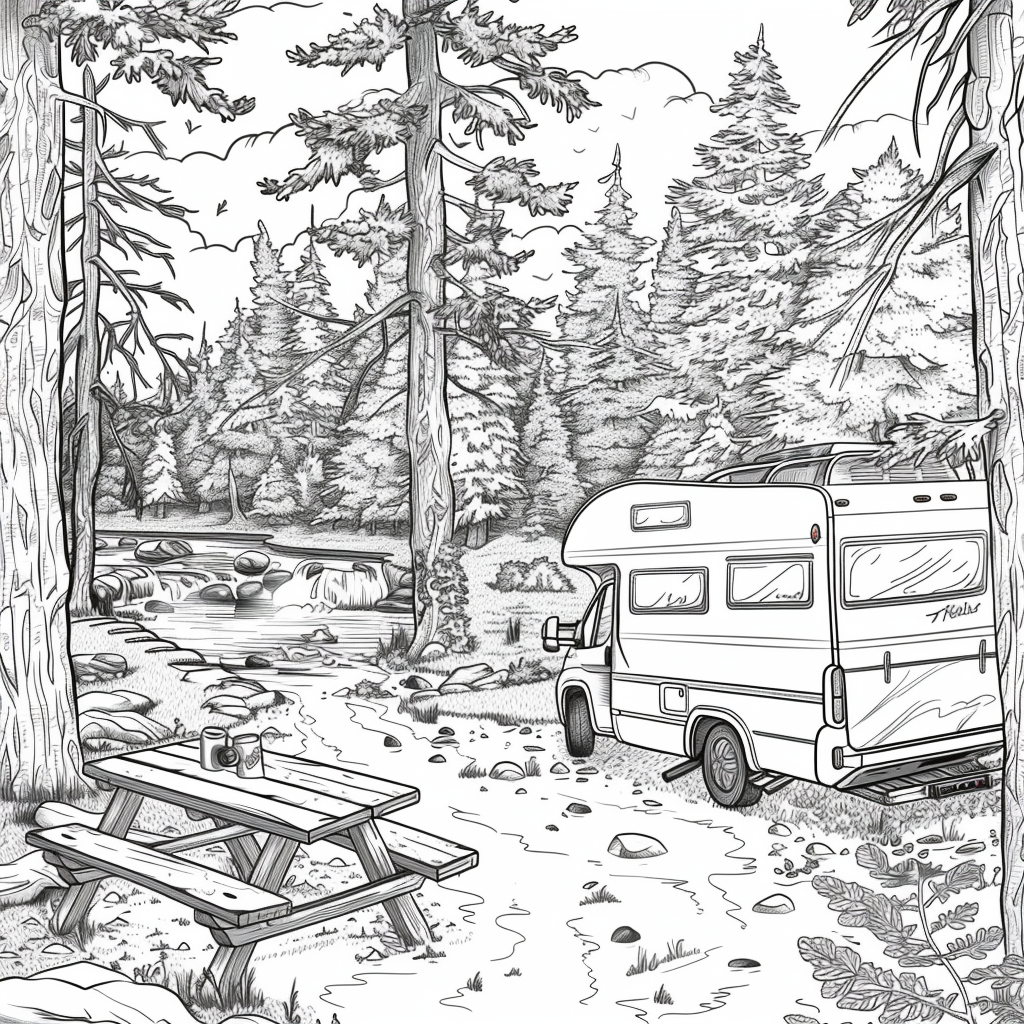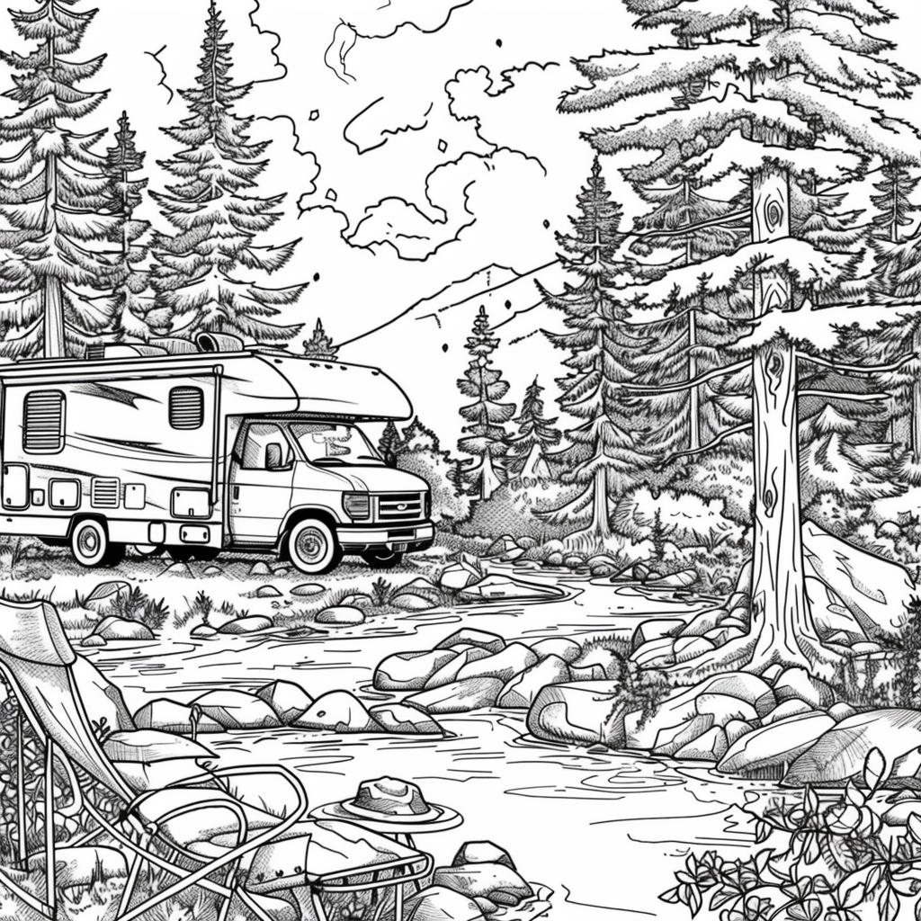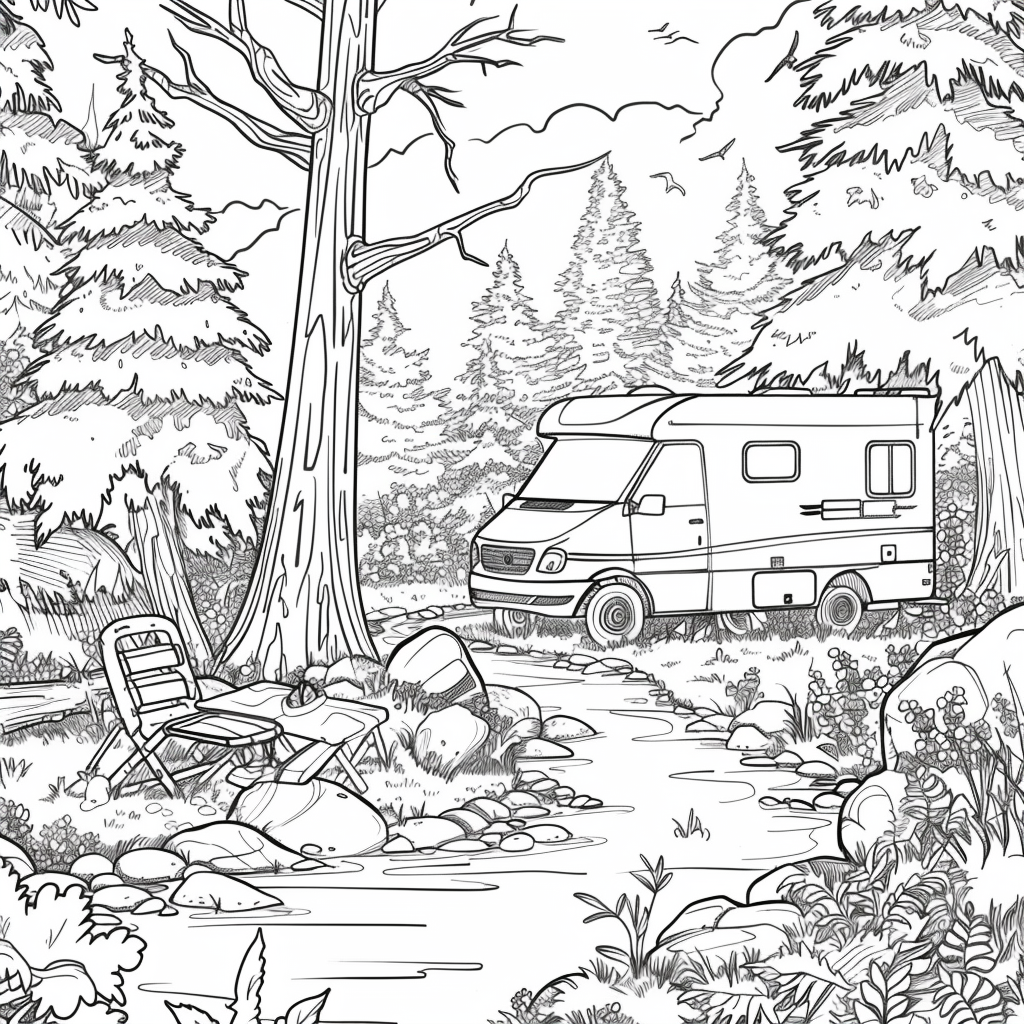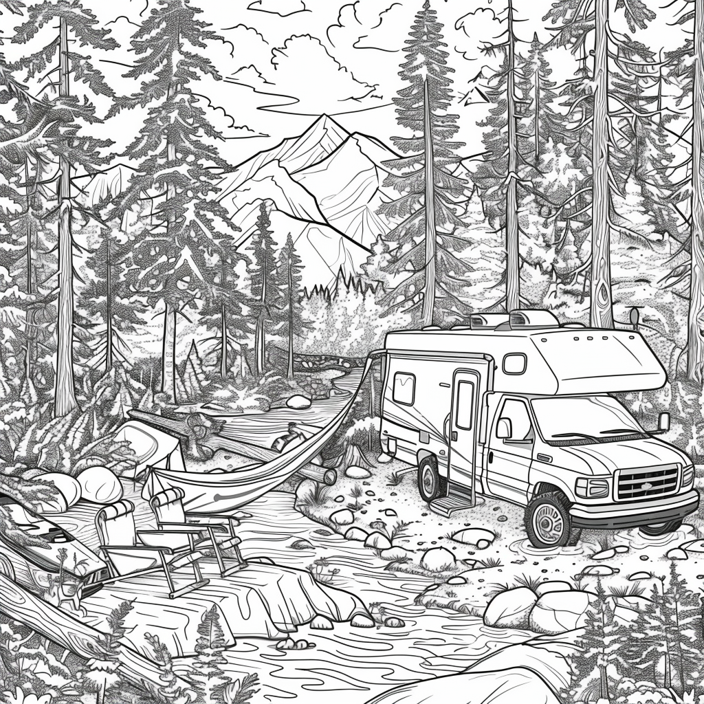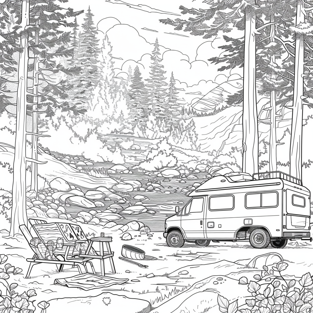 Bathed in golden morning light, a small family shares a peaceful moment beside a forest stream, nestled deep in towering pines. Their bright orange tent glows warmly against the cool greens and blues of the forest, while dappled sunlight filters through the trees, casting a magical hue over the scene. Painted in loose, expressive watercolor strokes, this artwork captures the serenity of nature and the intimacy of simple connection—an ode to slowing down, breathing deeply, and cherishing the wild beauty around us.