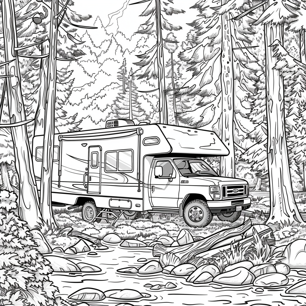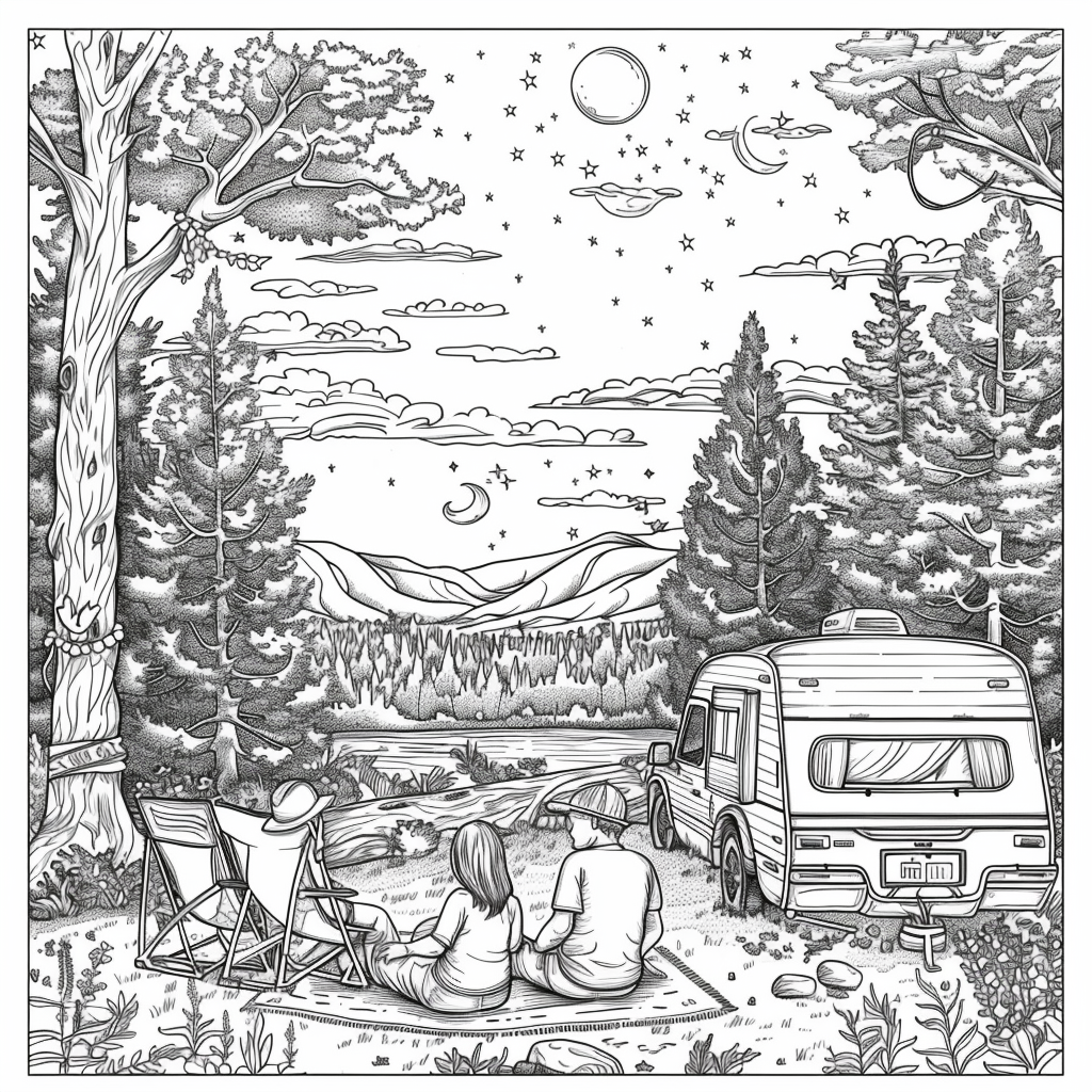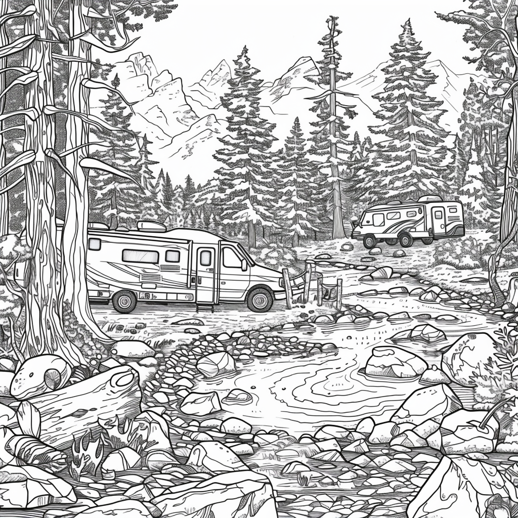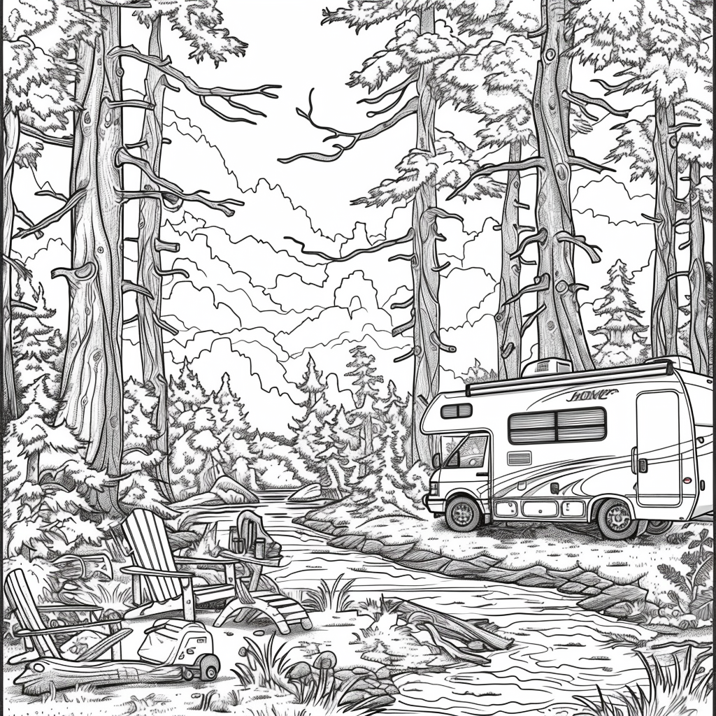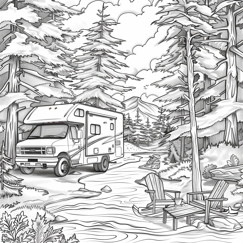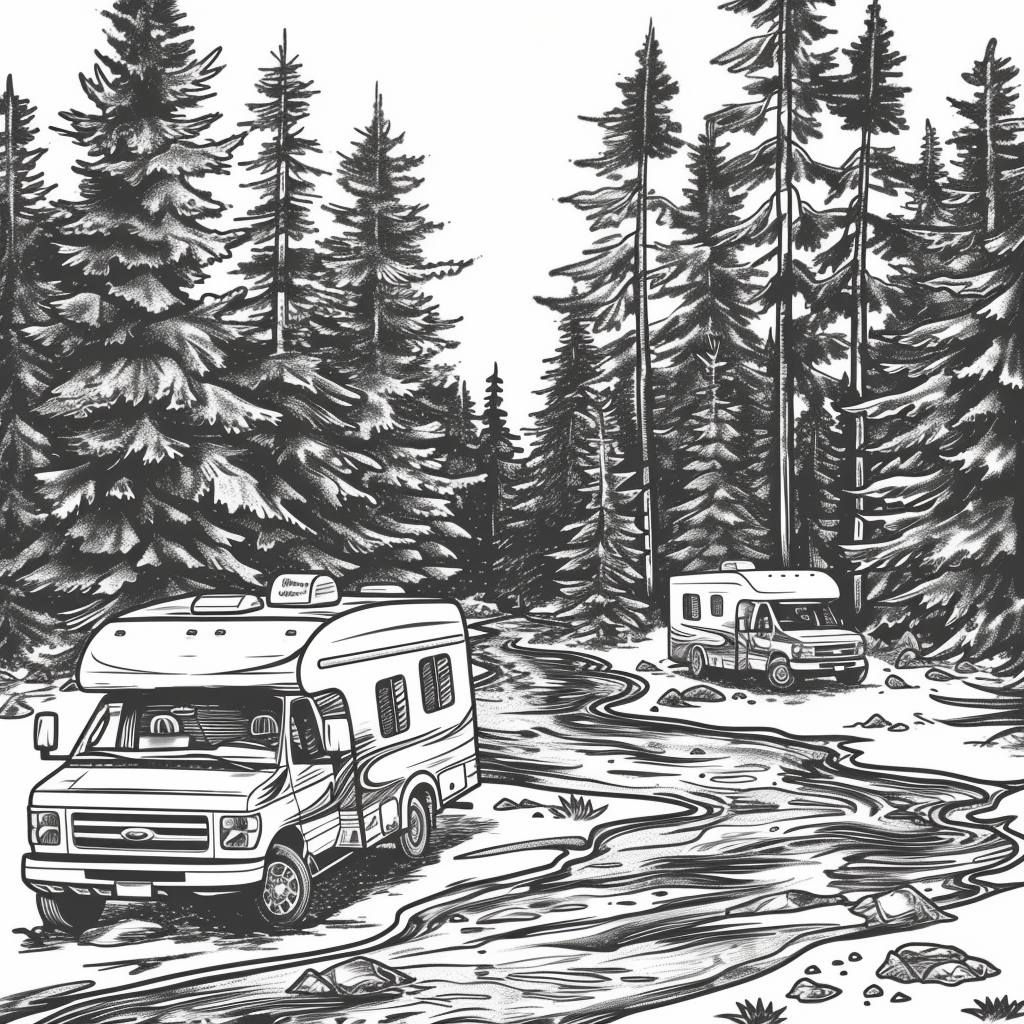 Bathed in golden morning light, a small family shares a peaceful moment beside a forest stream, nestled deep in towering pines. Their bright orange tent glows warmly against the cool greens and blues of the forest, while dappled sunlight filters through the trees, casting a magical hue over the scene. Painted in loose, expressive watercolor strokes, this artwork captures the serenity of nature and the intimacy of simple connection—an ode to slowing down, breathing deeply, and cherishing the wild beauty around us.