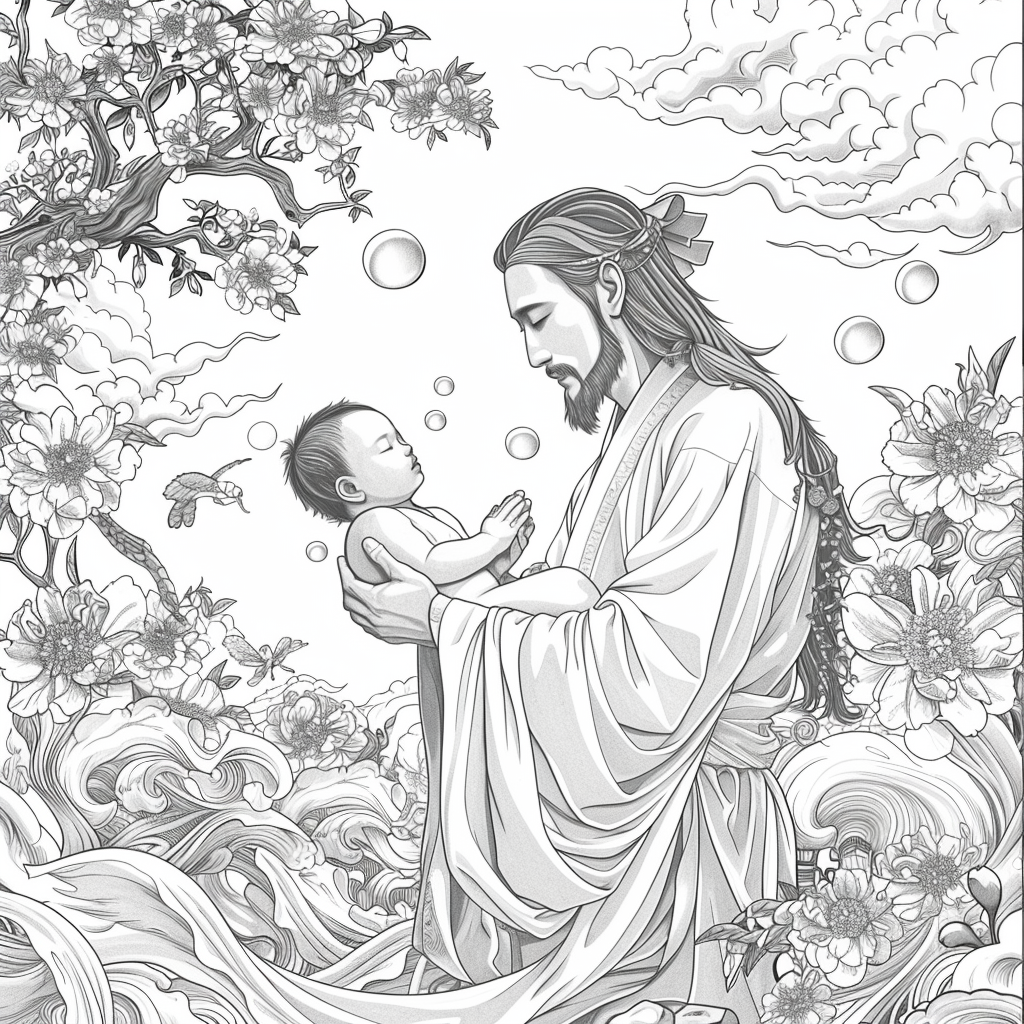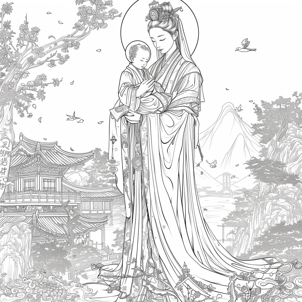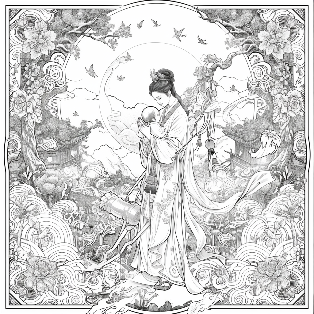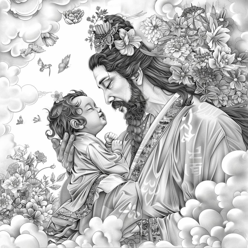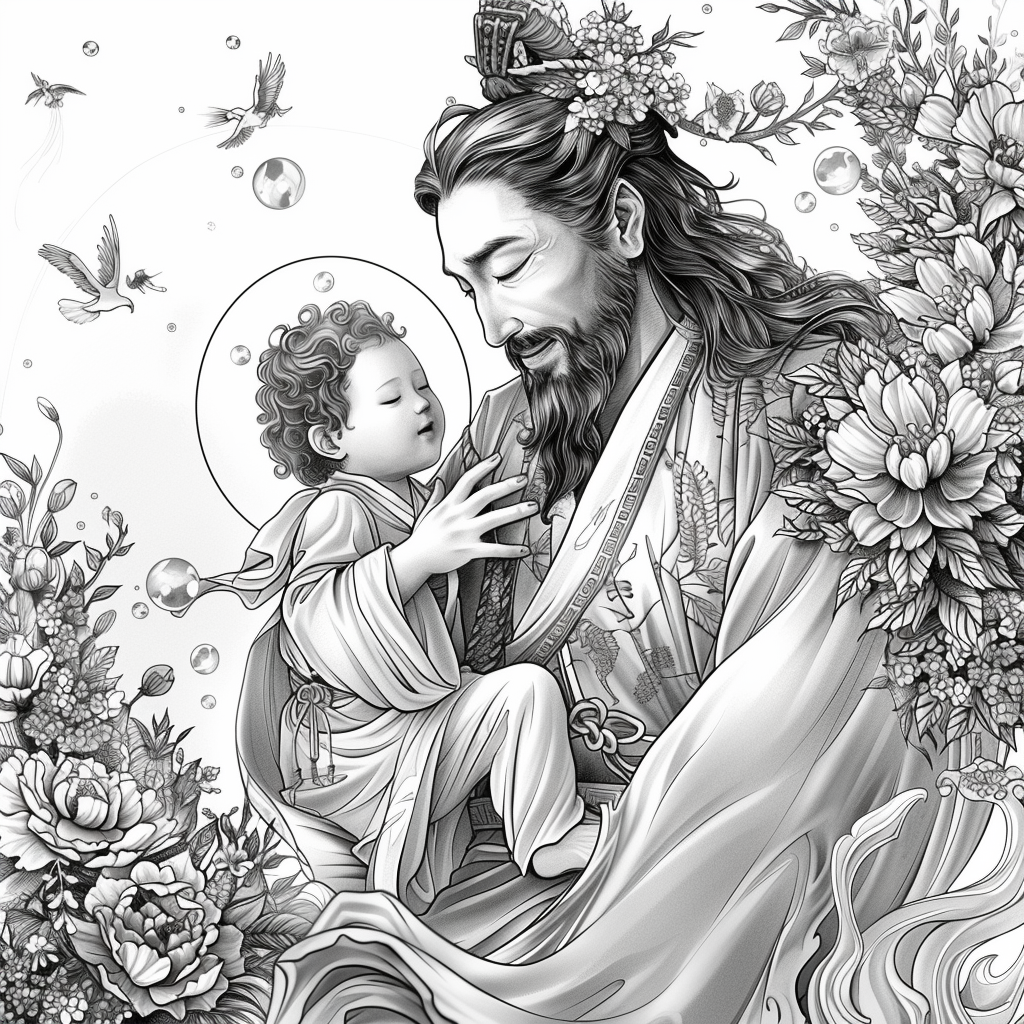 Wrapped in a tapestry of blooming splendor, the Floral Oracle stands in serene prayer, surrounded by swirls of mist and celestial ornamentation. Her robes flow like petals in the wind—each layer embroidered with vibrant flowers, flowing waves, and sacred motifs. A glowing halo frames her gentle face, while butterflies and lanterns dance in the air, hinting at divine presence and spiritual awakening. With elegance rooted in tradition and nature, she represents the harmonious balance between inner peace and outer beauty—a guardian of wisdom, prayer, and renewal.