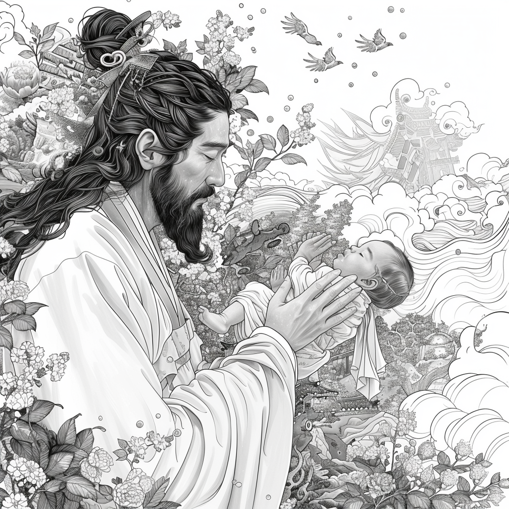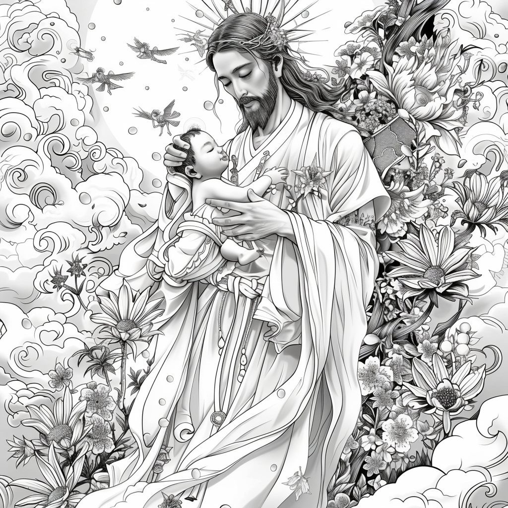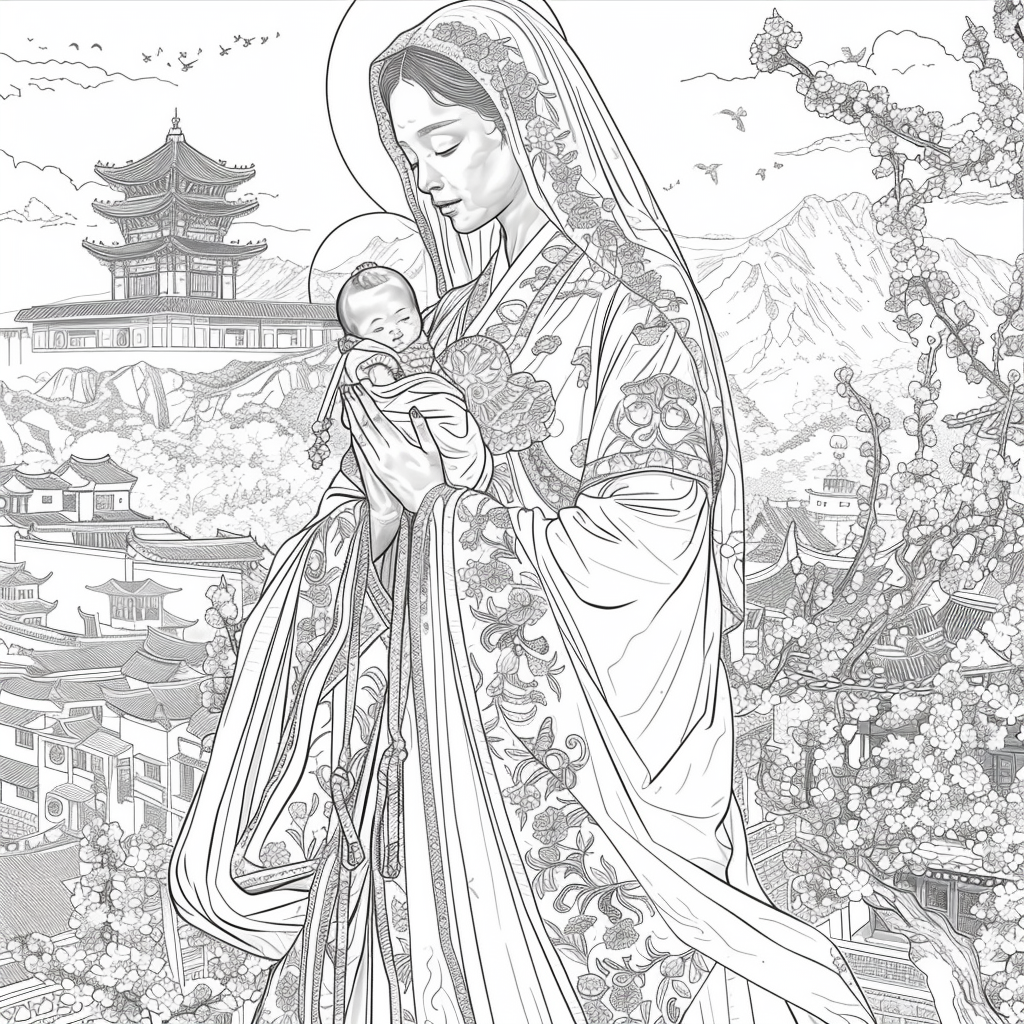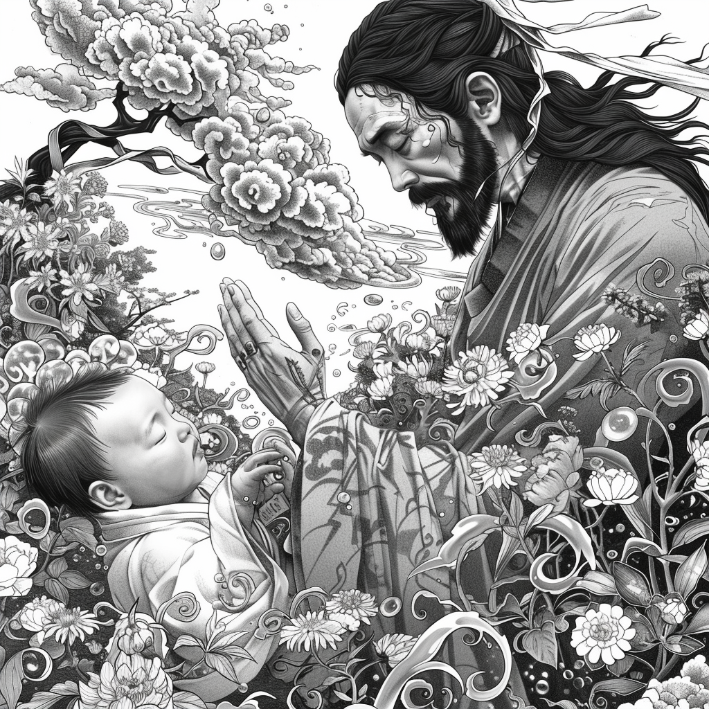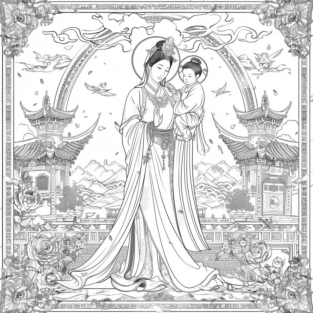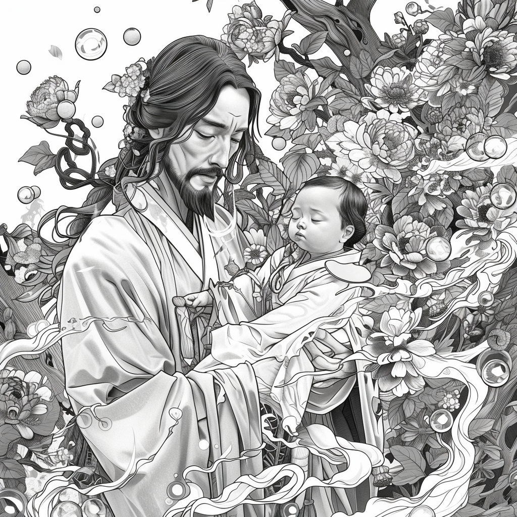 Wrapped in a tapestry of blooming splendor, the Floral Oracle stands in serene prayer, surrounded by swirls of mist and celestial ornamentation. Her robes flow like petals in the wind—each layer embroidered with vibrant flowers, flowing waves, and sacred motifs. A glowing halo frames her gentle face, while butterflies and lanterns dance in the air, hinting at divine presence and spiritual awakening. With elegance rooted in tradition and nature, she represents the harmonious balance between inner peace and outer beauty—a guardian of wisdom, prayer, and renewal.