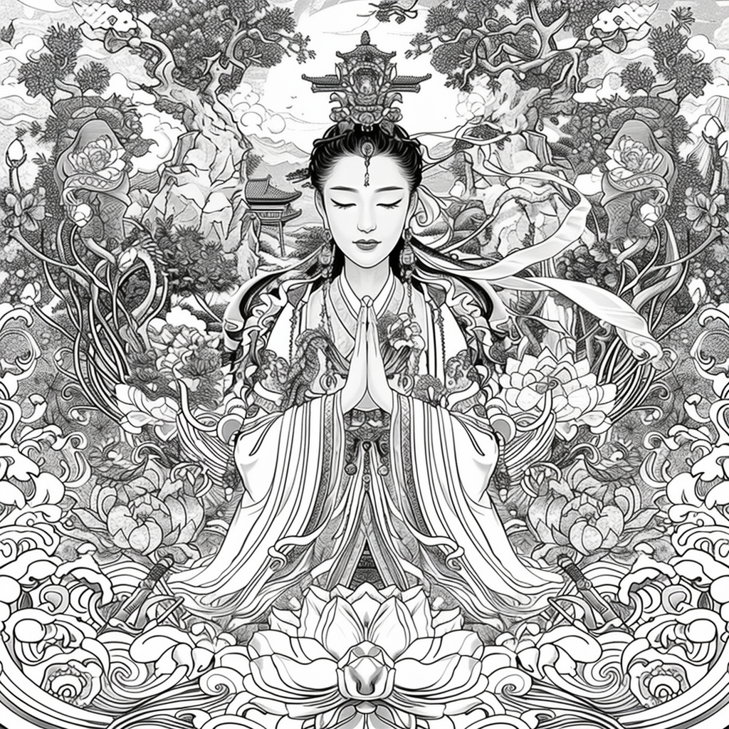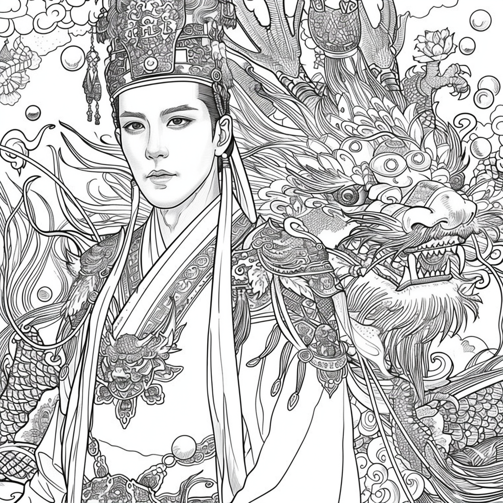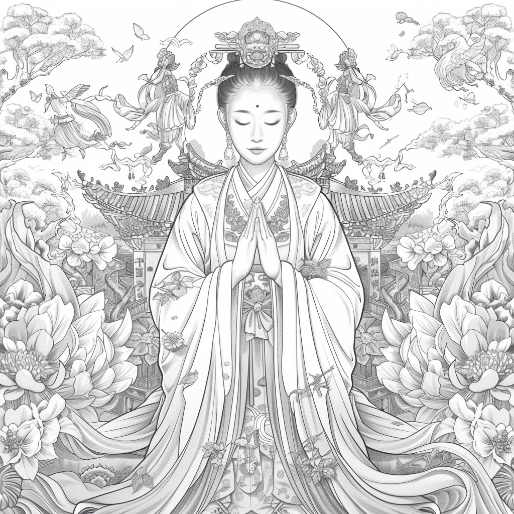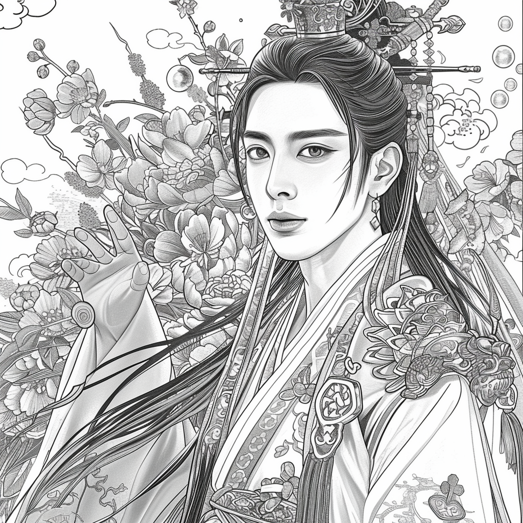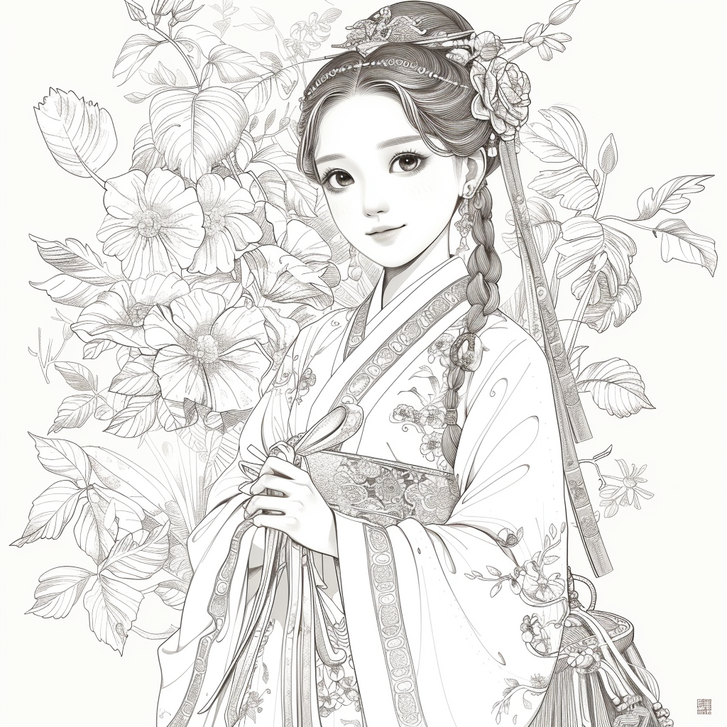 A regal Korean woman is depicted in side profile, her gaze calm and composed against a richly textured gold background. Wearing a brilliant red hanbok embroidered with lush peony blossoms, she radiates nobility and feminine strength. Her hair is arranged in an elegant chignon adorned with an ivory peony and intricate traditional ornaments. Every detail—from her ornate earring to the golden patterns in her attire—speaks of prestige, grace, and the timeless beauty of Joseon-era royalty.