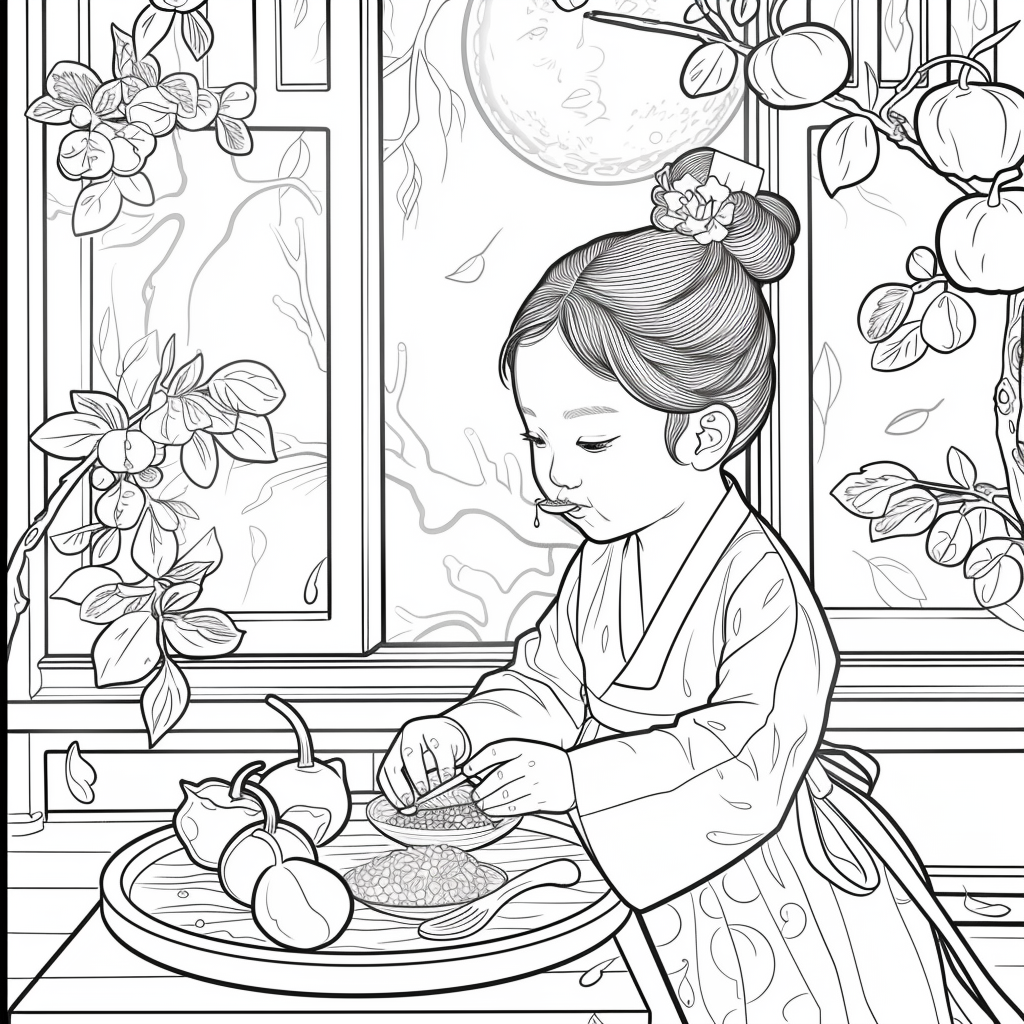 A tender watercolor scene of a young girl in a mint-green hanbok adorned with delicate floral embroidery, gently pulling a small wooden cart filled with flowers and dolls. Her soft smile and the graceful braid tied with a pink ribbon evoke warmth and serenity. The background, painted in pastel tones of green and rose, whispers of spring’s gentle air and blooming life. This artwork beautifully captures the essence of childhood joy and quiet affection — a nostalgic glimpse of pure, timeless grace in a Korean garden.