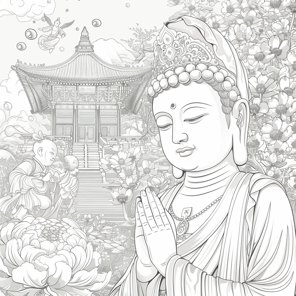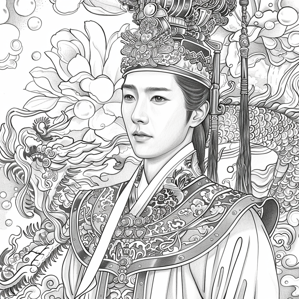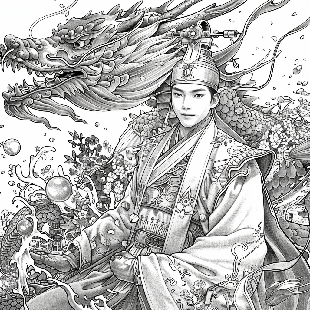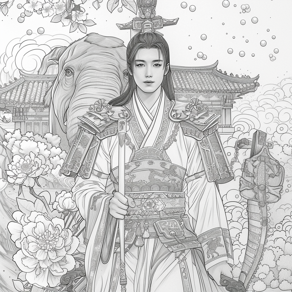 Amidst a flourishing paradise of blossoms and soaring birds, the empress steps gracefully through a dreamlike landscape. Draped in flowing silk robes of turquoise, crimson, and gold, her gown blooms with embroidered flowers that merge seamlessly with the living garden around her. Cherry blossoms drift through the air, carried by the breeze, as birds in vibrant flight accompany her presence. Behind her, an ornate palace rises among ancient trees, symbolizing the harmony of human artistry and natural wonder. With long flowing hair adorned in floral ornaments, she embodies beauty, renewal, and the eternal spirit of spring. This artwork radiates serenity and majesty, as if capturing the very soul of a goddess walking within a painting of paradise.