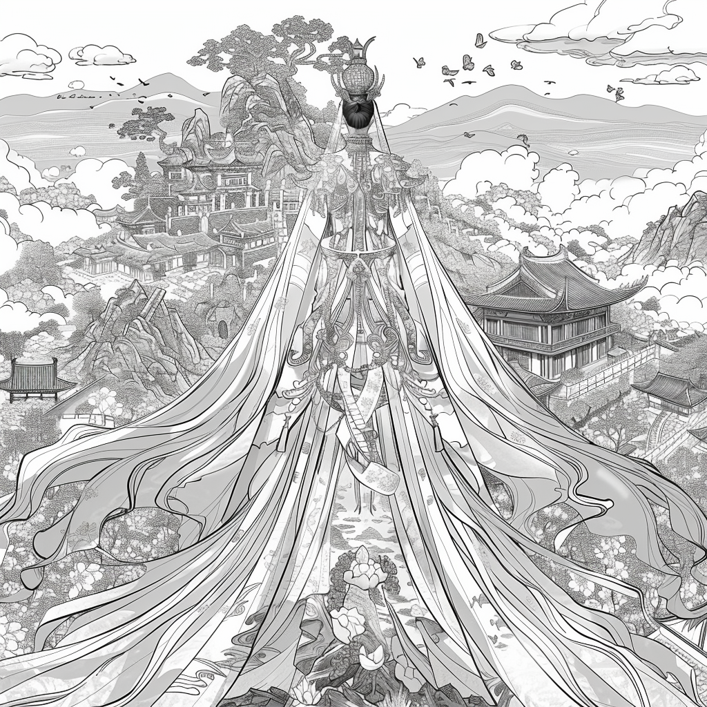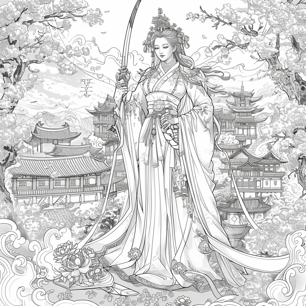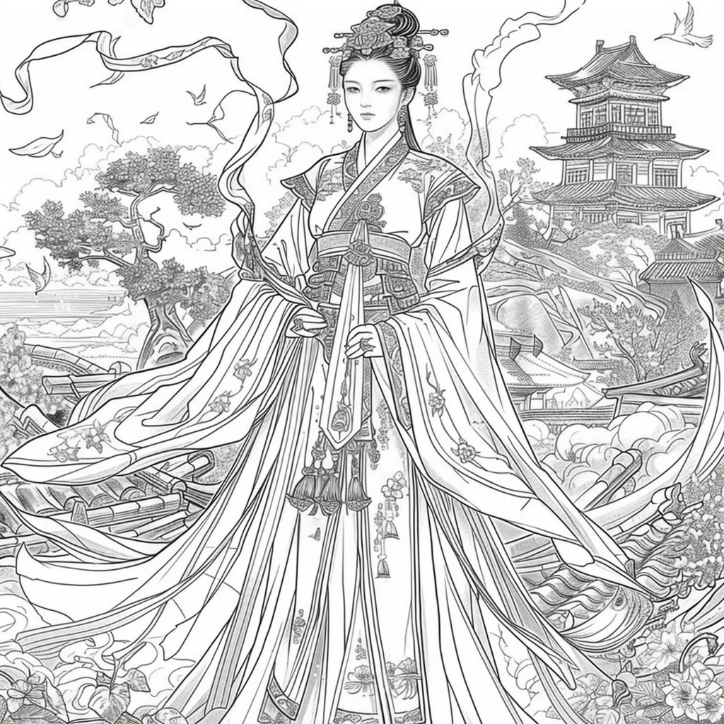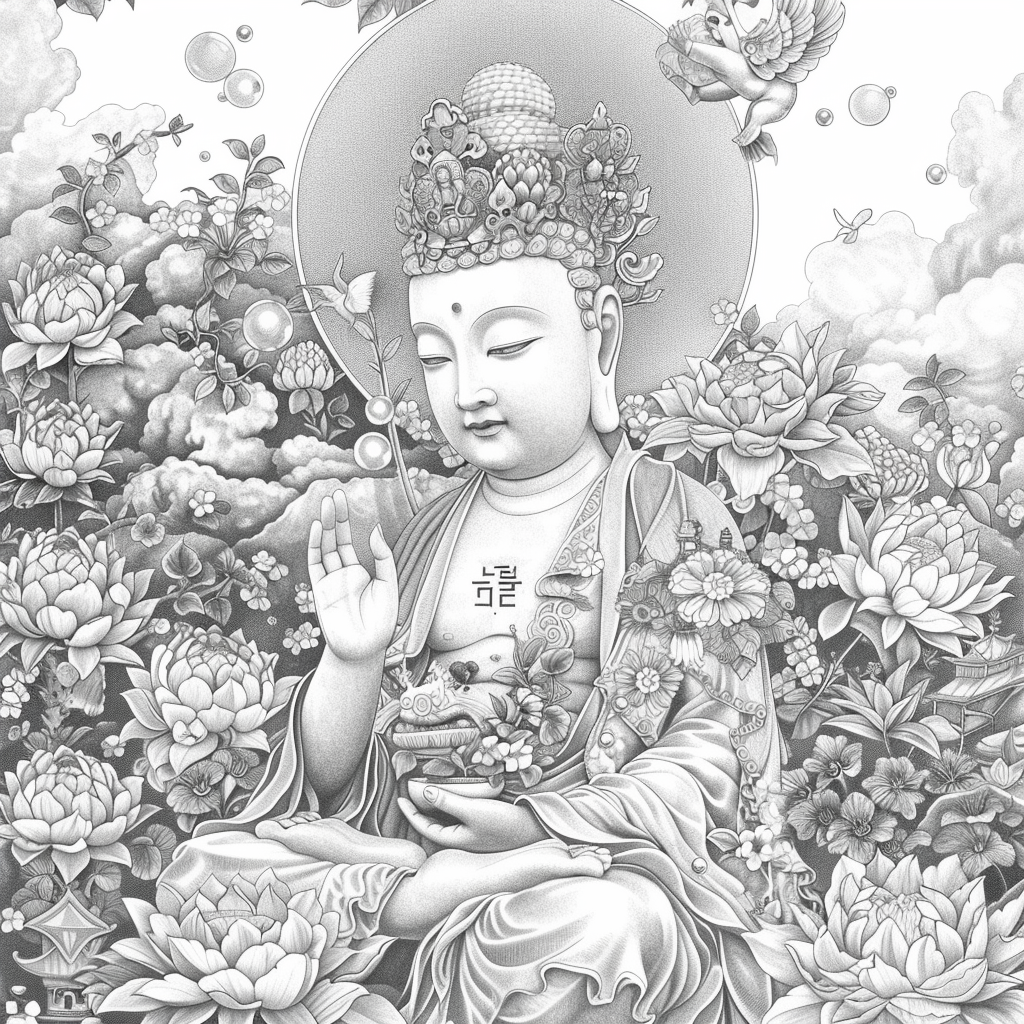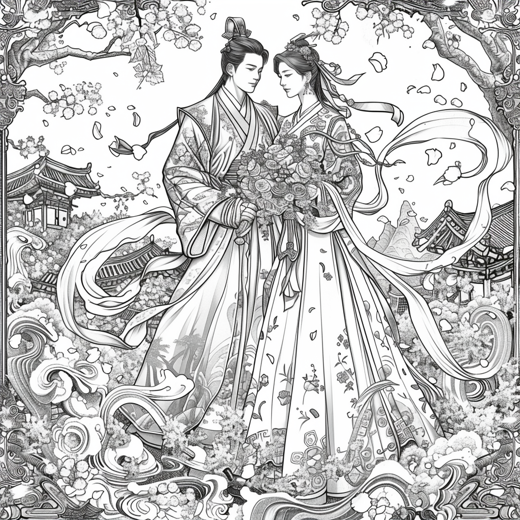 This enchanting artwork portrays a princess in a pastel hanbok adorned with floral patterns, seated amidst a dreamlike world of blossoms, butterflies, and shimmering bubbles. With elegance and serenity, she balances a small cat upon her finger, symbolizing playfulness and companionship. Her ornate headdress, adorned with jewels and flowers, glimmers with ethereal light, enhancing the fantasy atmosphere. The composition is alive with vibrant colors and magical elements, blending tradition with imagination. It embodies both innocence and wonder, presenting the princess as a bridge between earthly grace and otherworldly fantasy.