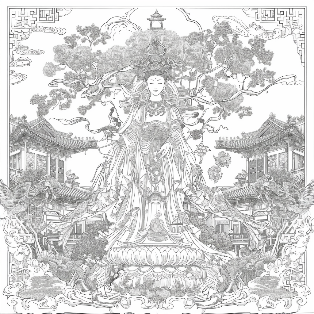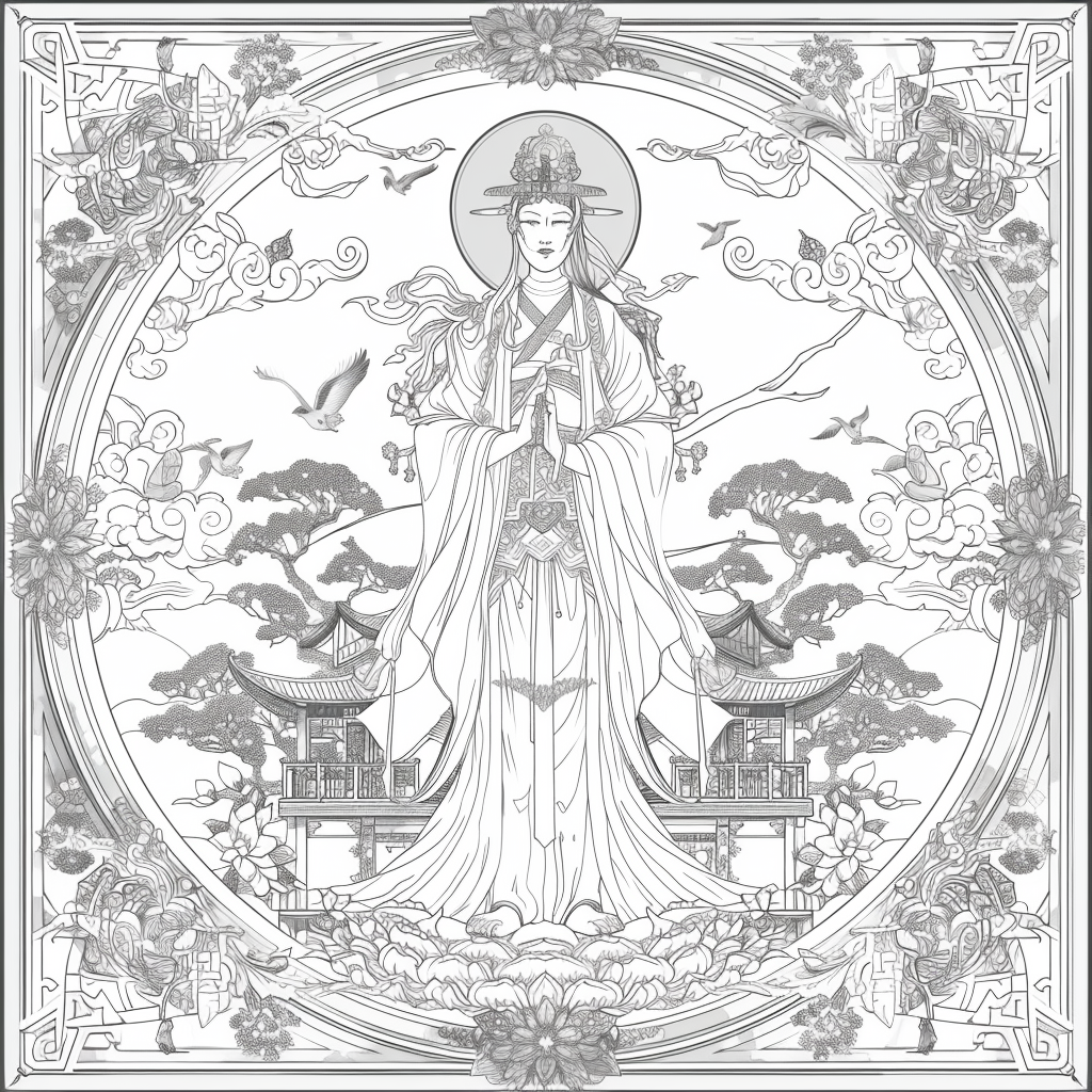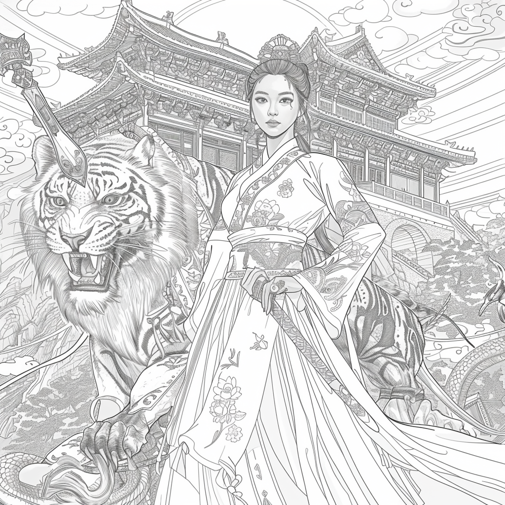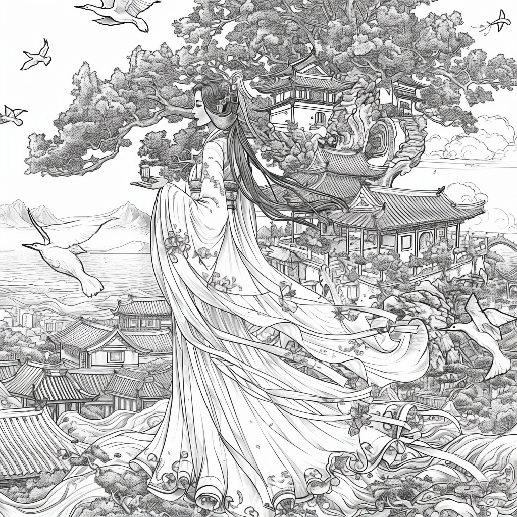 This enchanting artwork portrays a princess in a pastel hanbok adorned with floral patterns, seated amidst a dreamlike world of blossoms, butterflies, and shimmering bubbles. With elegance and serenity, she balances a small cat upon her finger, symbolizing playfulness and companionship. Her ornate headdress, adorned with jewels and flowers, glimmers with ethereal light, enhancing the fantasy atmosphere. The composition is alive with vibrant colors and magical elements, blending tradition with imagination. It embodies both innocence and wonder, presenting the princess as a bridge between earthly grace and otherworldly fantasy.
