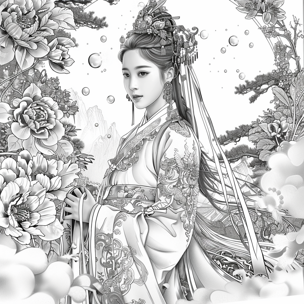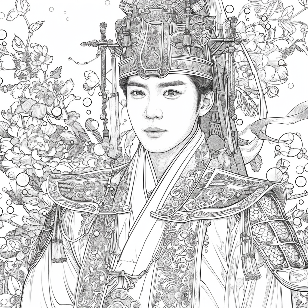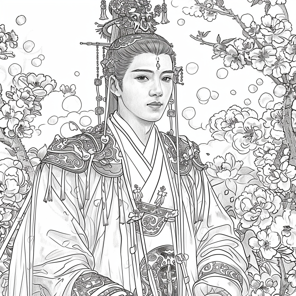 This artwork portrays a noble prince in resplendent ceremonial attire, his robes adorned with intricate patterns and a vivid array of colors—gold, crimson, emerald, and sapphire—symbolizing prosperity and royal dignity. His ornate headdress blooms with flowers and jewels, extending like a crown of nature’s abundance. Behind him stands a majestic elephant, its calm presence symbolizing wisdom, strength, and stability. Flowing waves, lotus blossoms, and swirling motifs envelop the scene, blending human grace with the grandeur of nature and myth. Together, the prince and the elephant embody harmony, resilience, and the eternal bond between leadership and compassion.