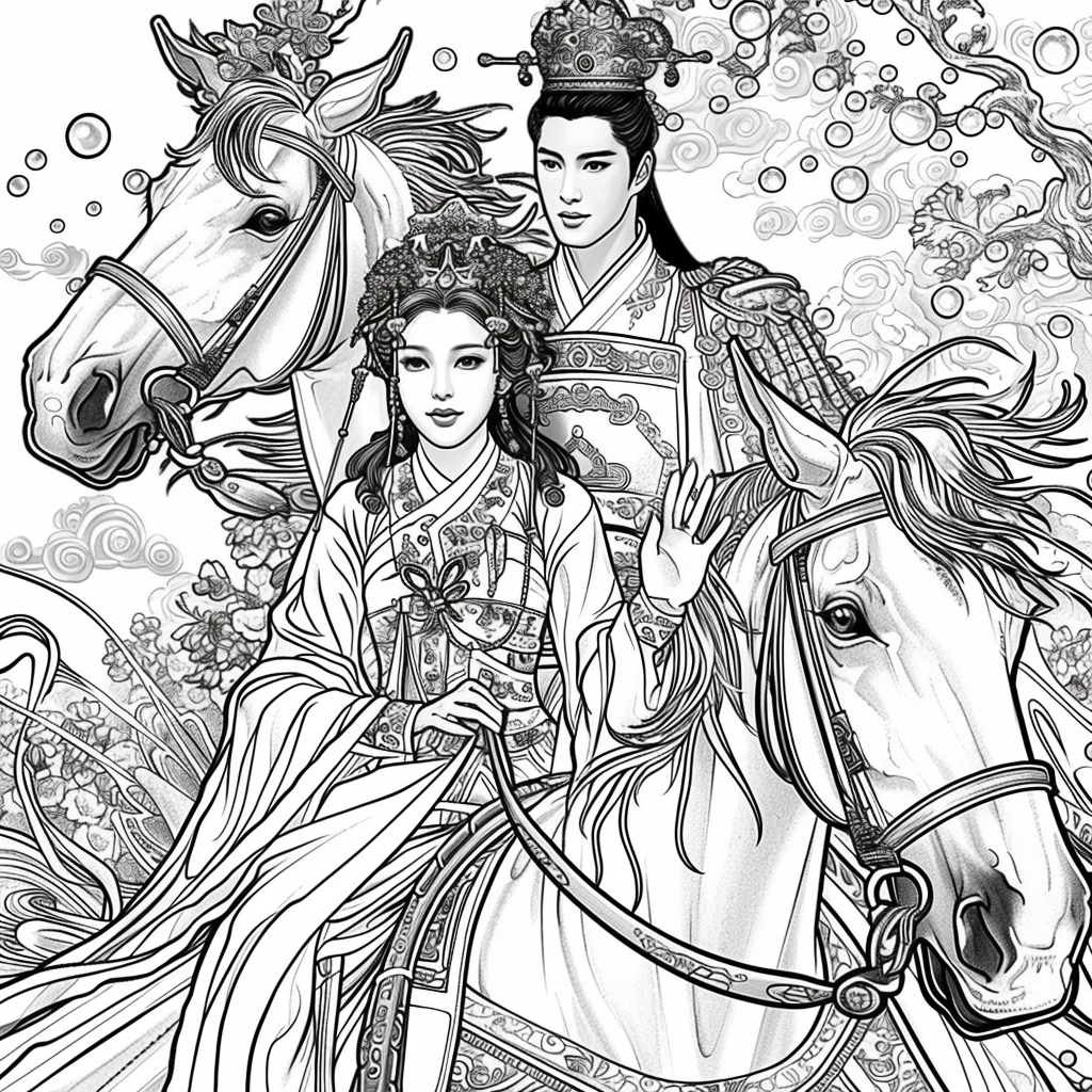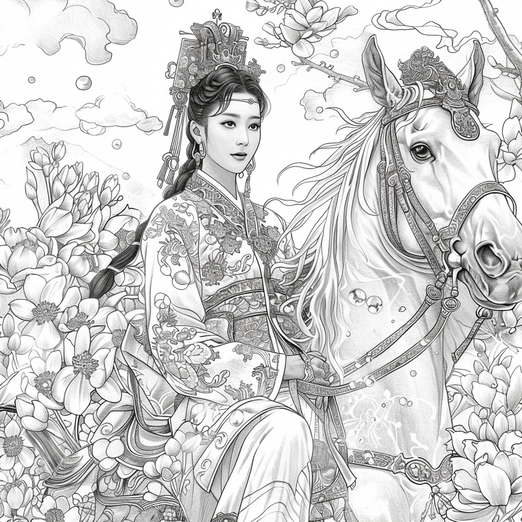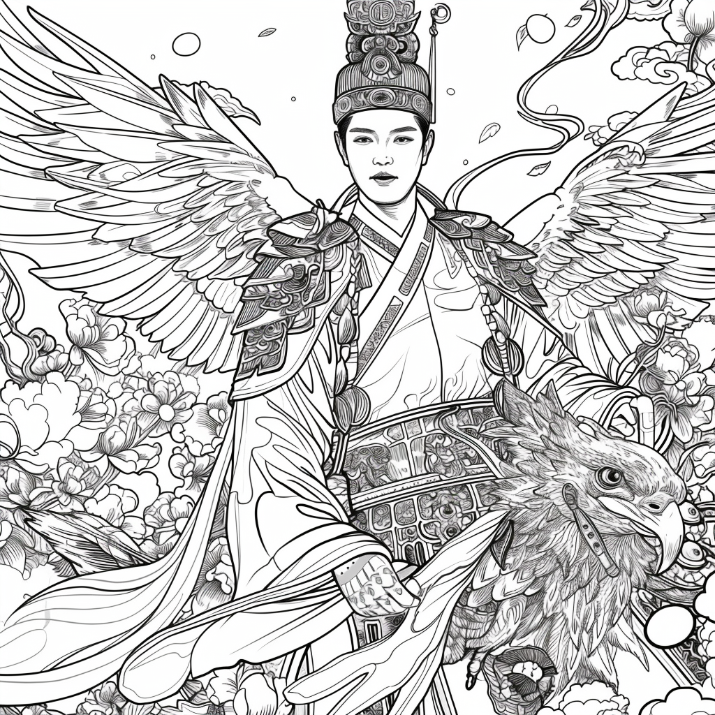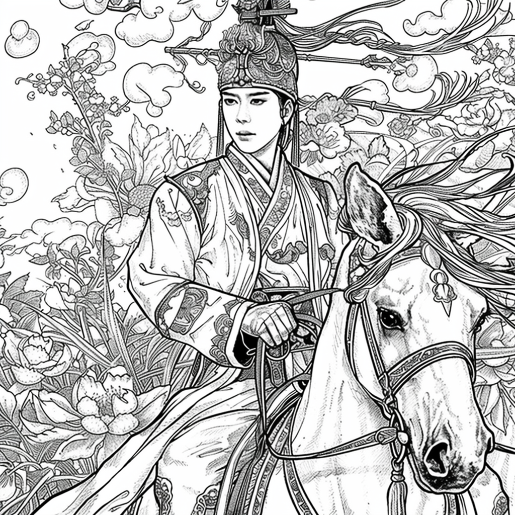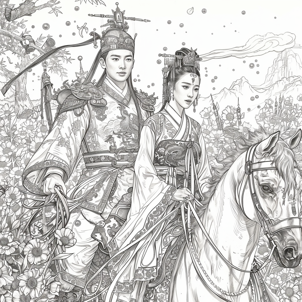 This artwork portrays a young Korean king adorned in an exquisitely detailed royal robe and ornate crown, exuding strength and nobility. Beside him roars a majestic tiger, symbolizing courage and protection. Flowing water, lotus blossoms, and delicate bubbles swirl around, blending the raw energy of nature with the elegance of tradition. The fusion of vibrant patterns, mythic symbolism, and serene yet powerful atmosphere highlights the balance between authority, spirit, and harmony in Korean heritage.
